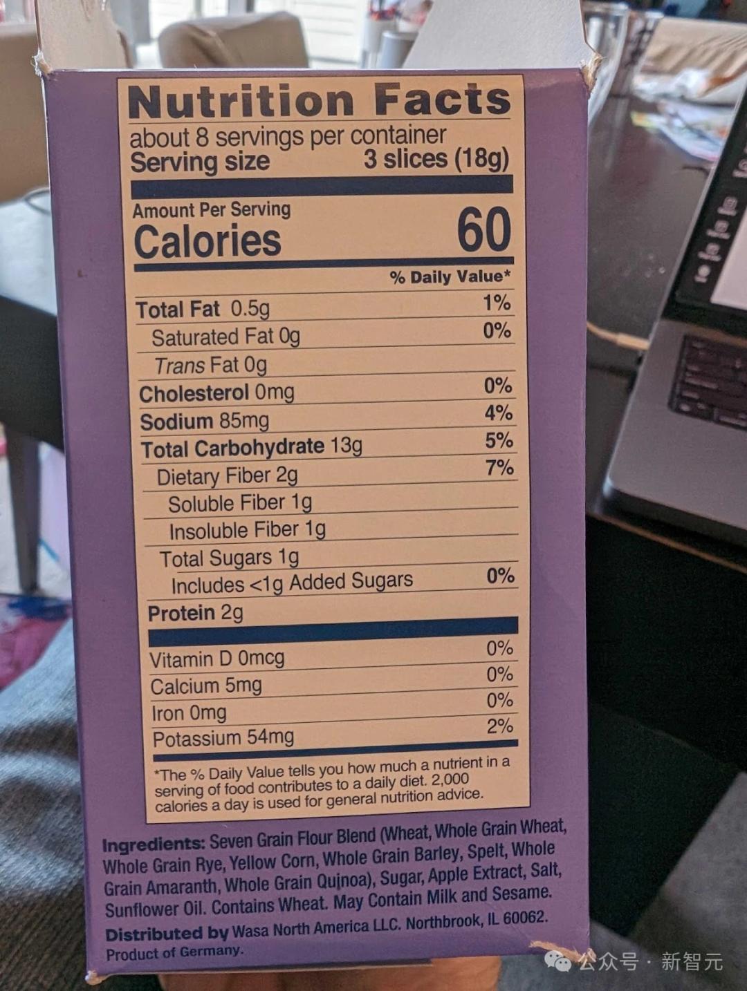 根据食品的营养配料表,Grok可以知道该食品一份份量是3片、含有60卡路里的热量,由此计算出,用户给出5片该食品的卡路里总数是100。