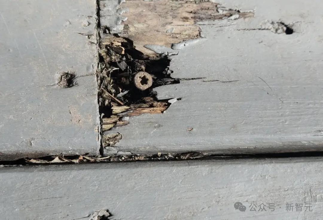 这些木板似乎已经开始腐烂。从螺丝周围出现的孔洞可以看出,这是木材腐烂的典型迹象。