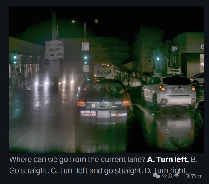 从当前车道可以去哪里?A.左转 B.直走 C.左转直行 D.右转Grok会选A。
