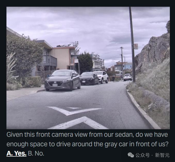 从轿车前方的摄像头来看,是否有足够的空间绕过前面的灰色轿车?Grok给出的答案是:是。