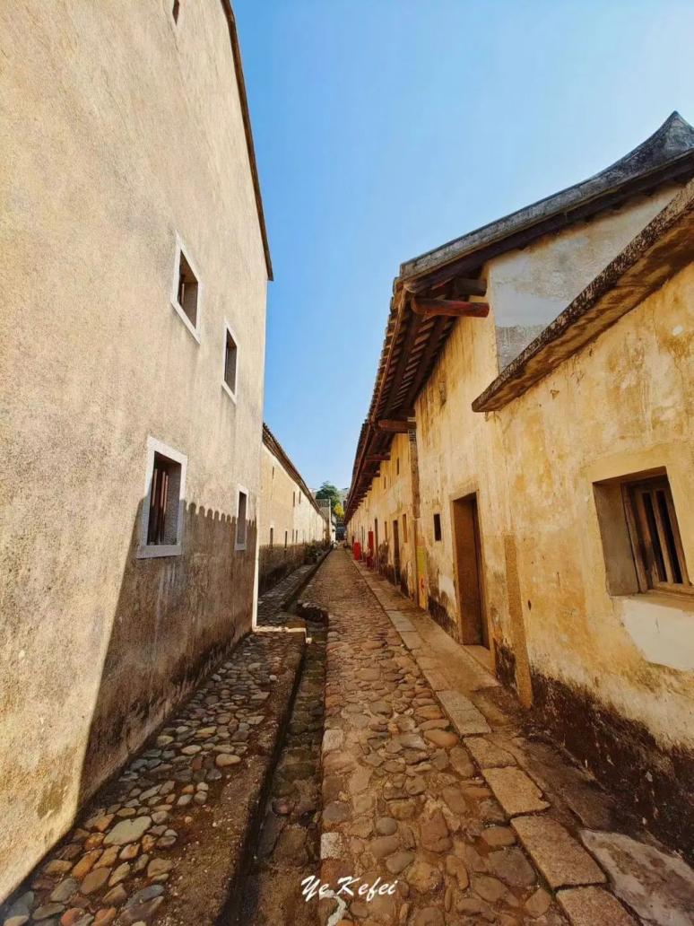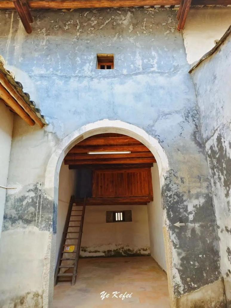 炮楼一角▲这些二层式是当年大万世居的住宅,每户大门都以灰麻石砌框,进门两侧均为厢房和厨房,内部户型相似。几户成一院,有甬道与外部相通。每一户乃至每个小院都有自己的私密性,又相互贯通。四面围墙均以沙子、黄土、石灰掺和红糖与糯米砌成,相当坚实牢靠。内部的水井、仓库和排水一应俱全。