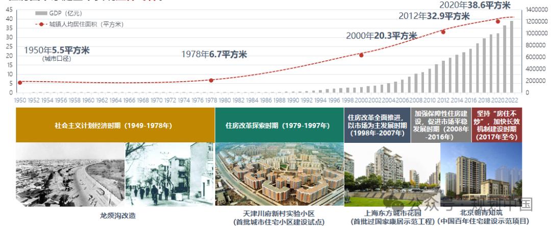 新中国成立以来,我国住房发展经历了社会主义计划经济时期(1949-1978年)、住房改革探索时期(1979-1997年)、住房改革全面推进、以市场为主发展时期(1998年-2007年)、加强保障性住房建设、促进市场平稳发展时期(2008年-2016年)和坚持“房住不炒”、加快长效机制建设时期(2017年至今)的不同阶段,住房制度建设稳步推进,我国居民住房条件显著改善,建成世界上最大住房保障体系。城镇人均住房建筑面积达到38.6平方米,累计建设各类保障性住房和棚改安置住房6300多万套,1.5亿多群众喜圆安居梦,低保、低收入住房困难家庭基本实现应保尽保。在解决有没有这个问题上,我们取得了很大的成就。当前,我国住房发展在理念、机制和工作重点上发生了重大变化,建立“人、房、地、钱”要素联动的新机制,完善房屋从开发建设到维护使用的全生命周期管理机制;加快保障性住房等“三大工程”建设,下力气建设好房子。
