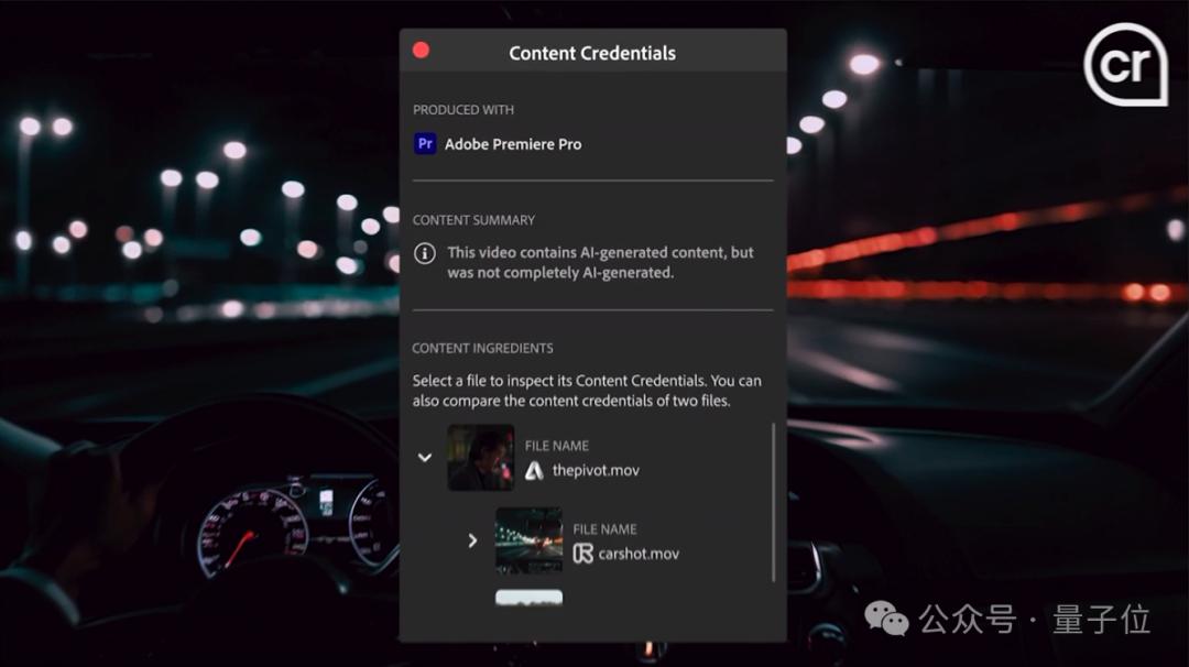 此外Adobe还提供了“内容凭证”功能,所有由Premiere Pro制作的视频都将清楚地表明是否使用了、以及使用了哪种AI技术。