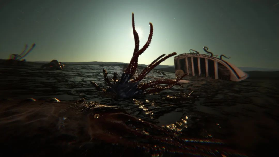 突然间,我看到了它。它从水下浮起,整个身躯在黑暗的水域中出现。巨大、如波吕斐摩斯(Polyphemus,希腊神话中吃人的独眼巨人,为海神波塞顿和海仙女托俄萨之子。译者注)般的可怕怪物,它宛如噩梦中的怪兽一样冲向巨石,用它庞大的鳞状手臂环绕着石碑,同时低下它那可怖的头颅,发出一些有规律的叫声。我想,我当时就疯了。