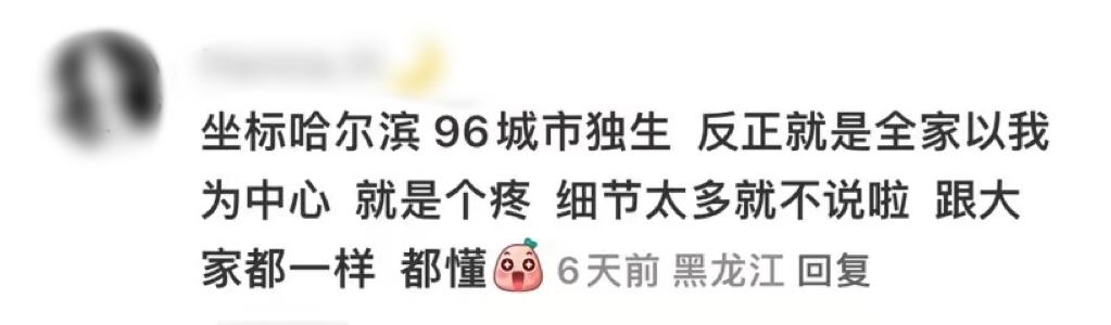 “和大家一样,都懂”“出生在全国独生率最高的区域,享受着全国最开放的性别观念。爸爸以疼女儿护犊子闻名,妈妈是戴金穿貂的小镇贵妇,或许家底不如南方富庶地区殷实,却能给孩子有十块绝不花九块的安全感。即使到了三十岁,还会被爸妈当成宝宝养。”