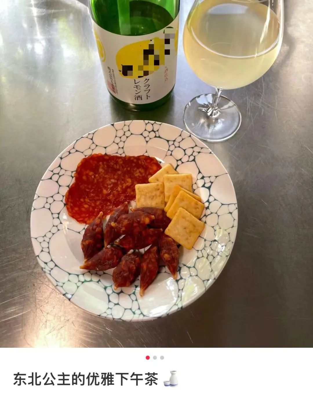 东北公主的下午茶,哈尔滨红肠拼盘/图源:@张饽饽“没有山姆就找代购,离海远就拼单三文鱼。虽然爸妈不懂名牌包,但一定从小就把黄金链子和小金锁给女儿挂在脖子上,几万块的貂也在女儿成年后安排上。”