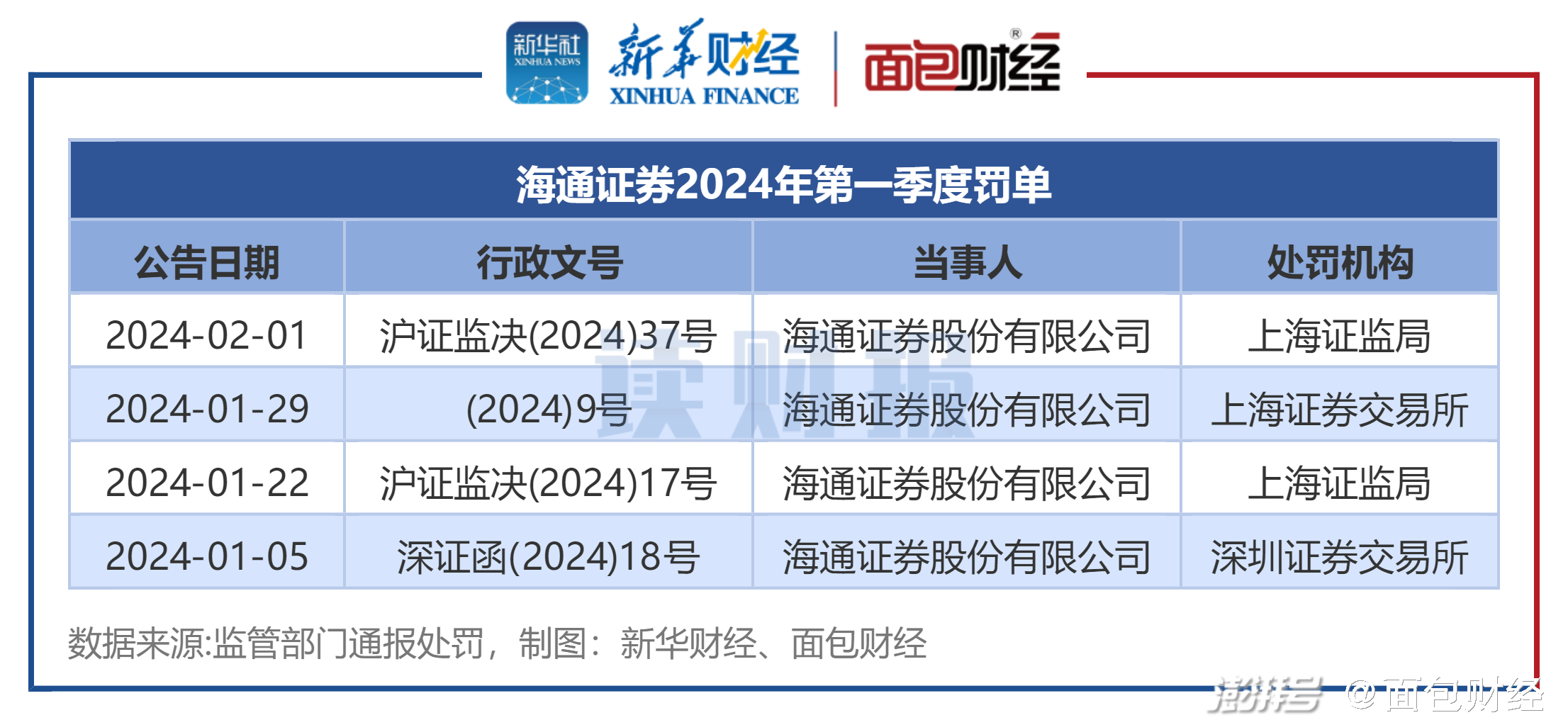 海通证券:一季度共收4张罚单