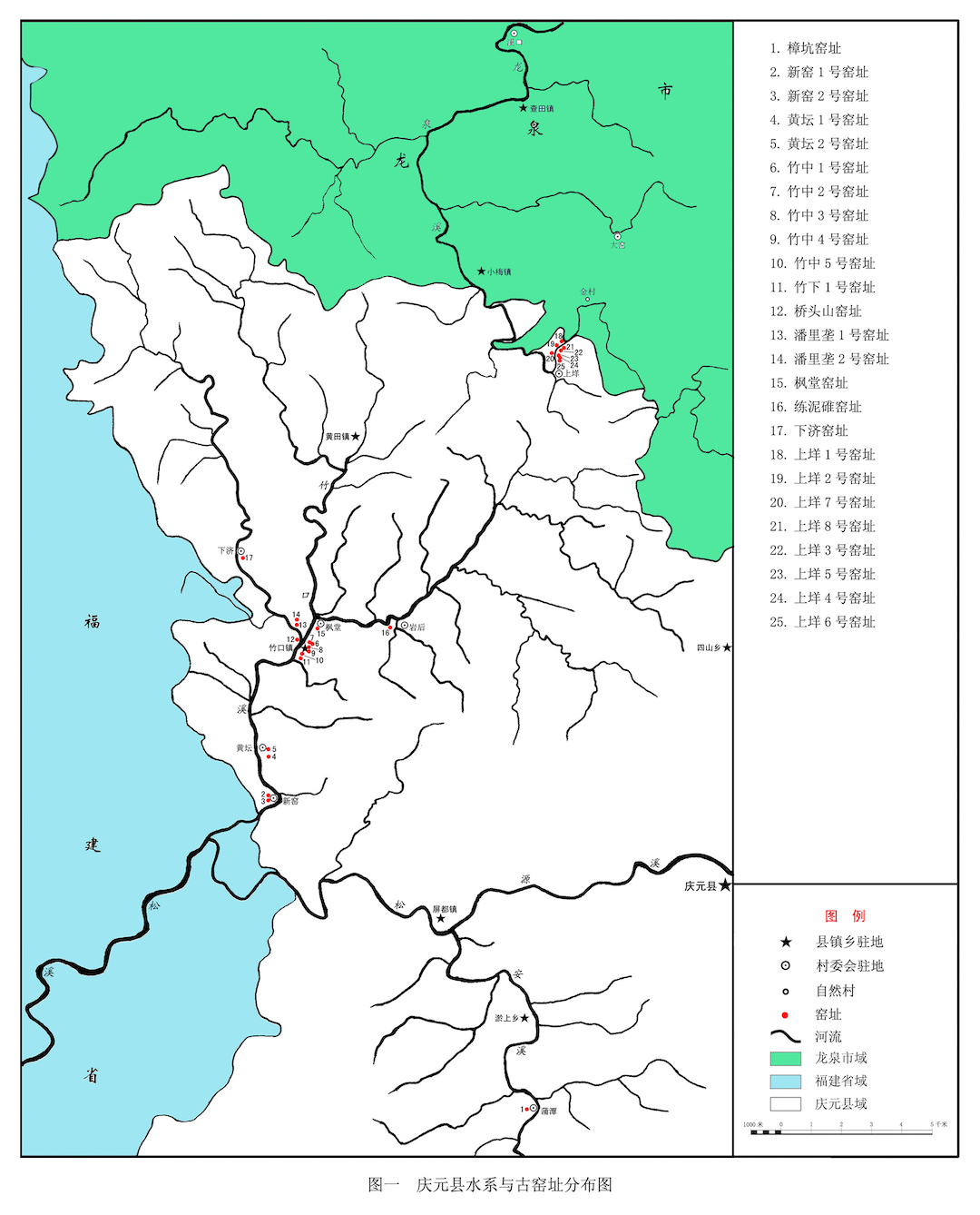 庆元县竹口溪古窑址分布图(浙江省文物考古研究所刘建安制)