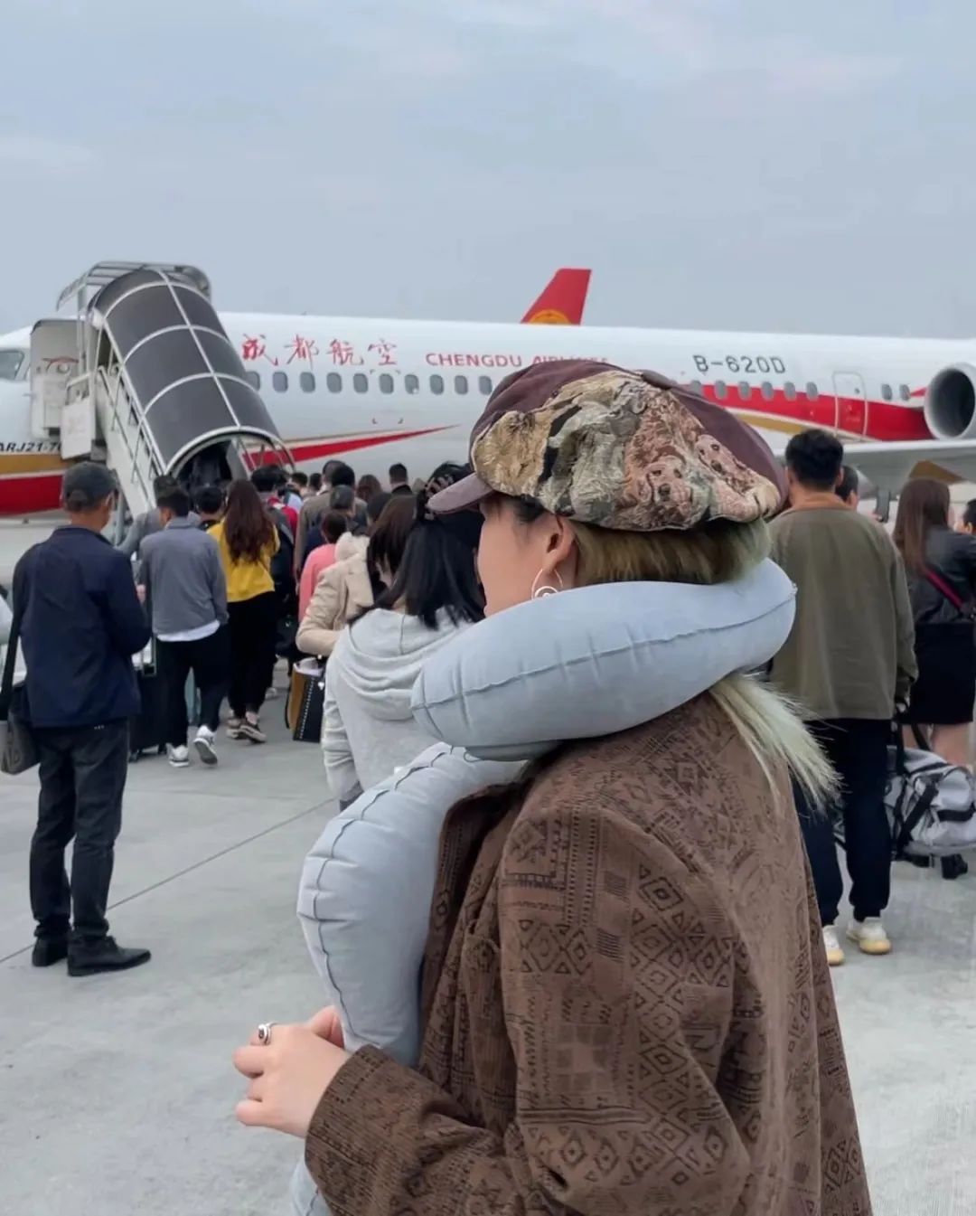 观察各位游客戴着颈枕的一定是飞四个小时去海边的