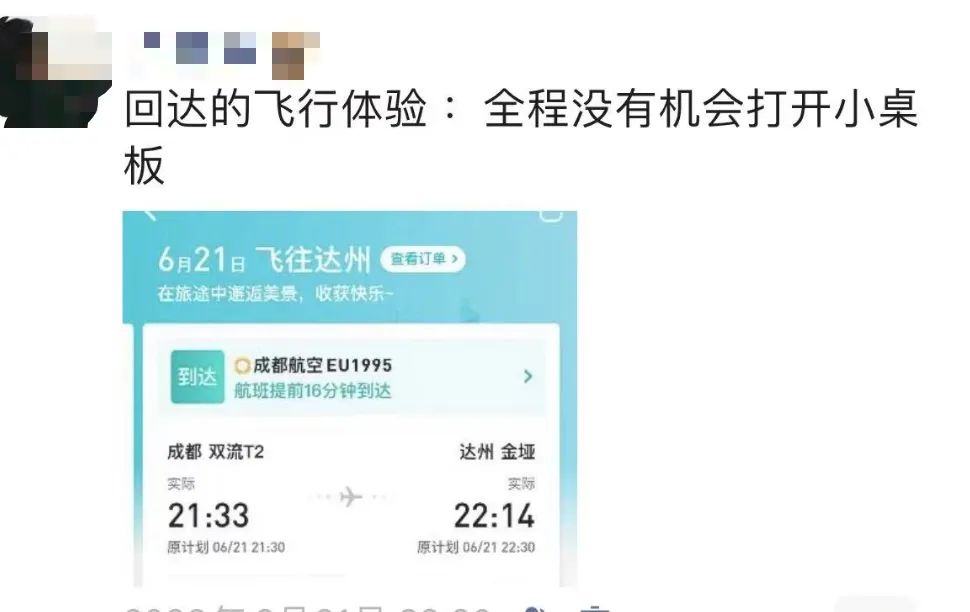 原来这趟航班只是途经达州