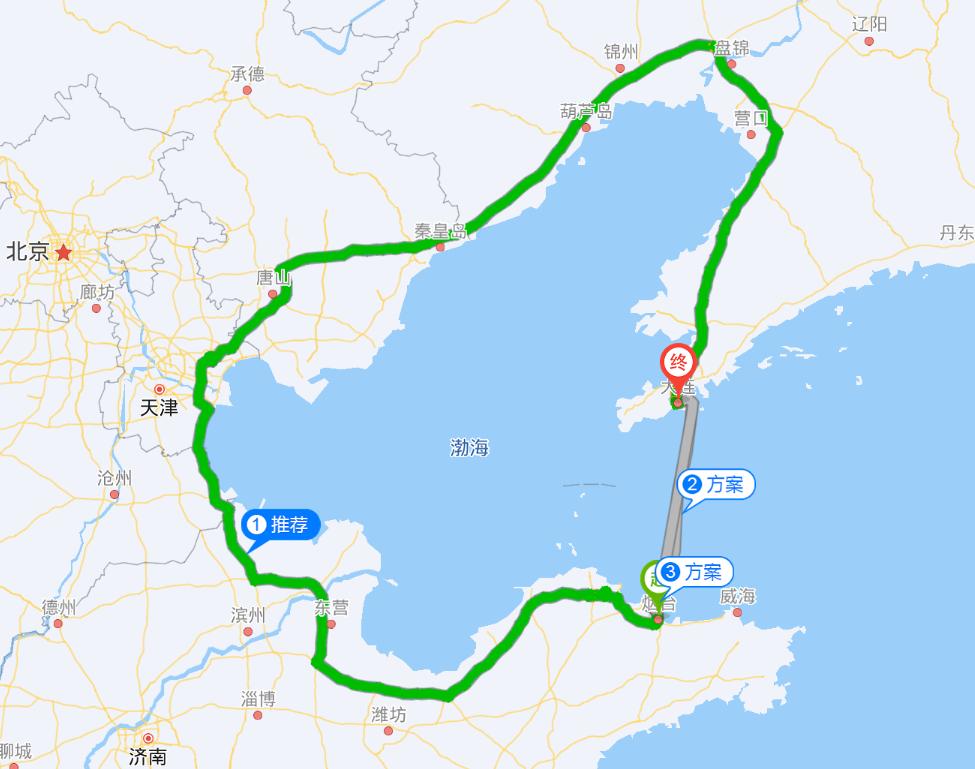 两地相距仅有100多公里,但由于没有大桥或隧道直通,陆路交通需要绕行山海关。