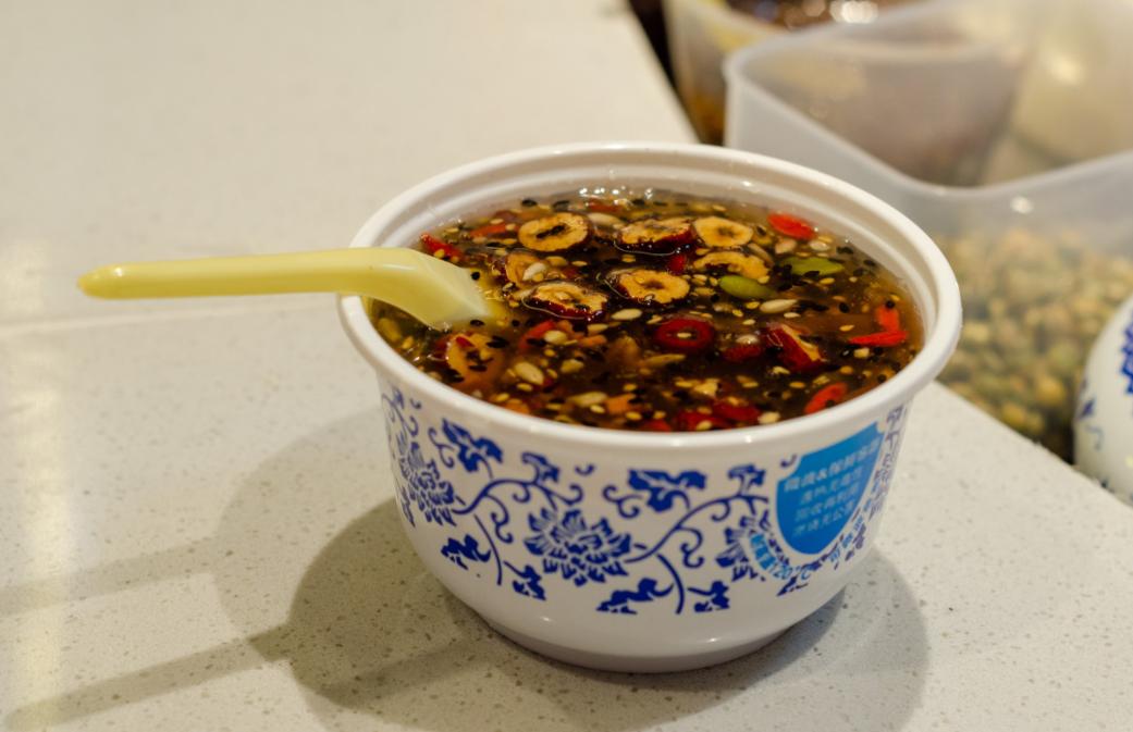 开封的甜口小吃种类不亚于苏杭,足以打败“南甜北咸”的俗语。自北宋传承至今的杏仁茶,特殊之处在于里面不仅有研磨细腻的杏仁粉,还有晶莹黏稠的藕粉,配料更有鲜杏仁、葡萄干、芝麻、花生、桂花、玫瑰、果脯等十来种之多,清香甜美,让人梦回《知否》《梦华录》的世界。