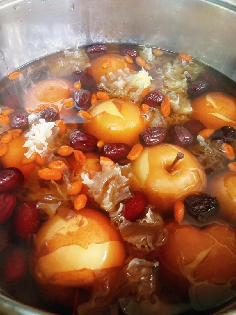切糕丨图虫创意秋冬气候干燥的时候,逛夜市的人几乎人手一杯冰糖红梨。用来蒸梨的大锅形如铁桶,里面层层堆着整个儿的梨和红枣、大块的冰糖,锅沿摆着一圈色泽晶亮的熟梨,以此证明真材实料。梨皮已经变成了红棕色,或许这就是它名字的由来。一杯红梨汤里面,浸着完整的梨,喝完清甜的汤水,还可以细细品尝柔软的梨子果肉。