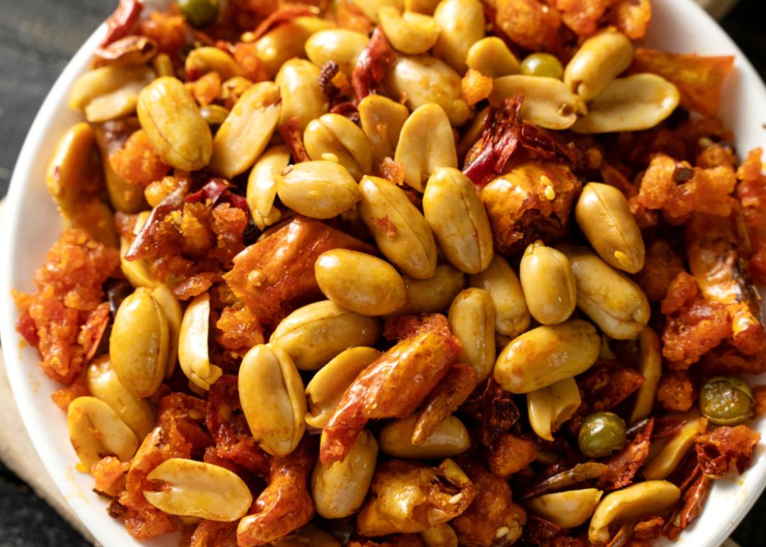 麻辣花生丨图虫创意炒熟的花生磨碎,和糖浆、糯米粉混合,做成的花生糕疏松分层,入口即化。现在花生糕的口味越来越多,桂花、芝麻、玫瑰乃至榴莲口味都出现了,但最受欢迎的还是原味花生糕。