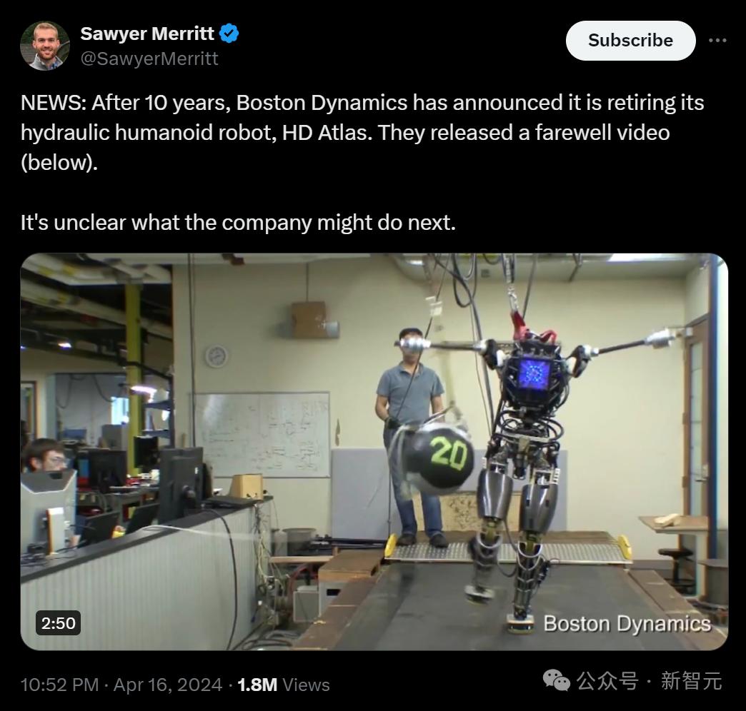 【新智元导读】波士顿动力的Atlas,今日正式宣布退役!在最后一段告别视频里,它依然在奔跑、跳跃、后空翻、甚至摔倒在地,从膝盖喷出了液压油,让屏幕前的几十万观众跟着喊疼。或许液压系统真的过时了,Atlas的退役,标志着一个时代的结束。