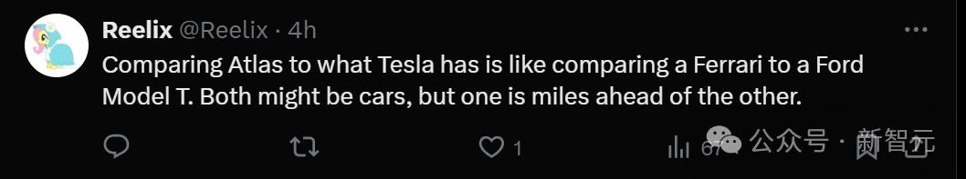 当然,也有人觉得,把Atlas和特斯拉相比,就好像把法拉利和福特Model T相比一样。二者的唯一共同点,就是都是车。