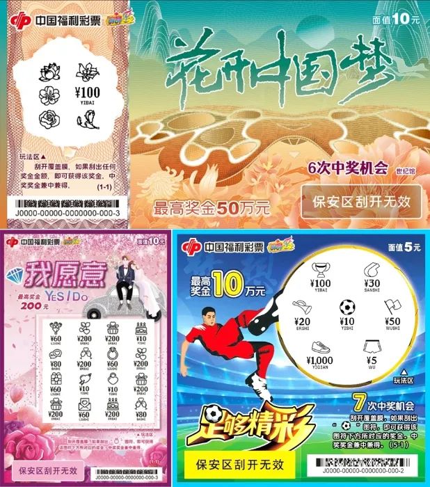 如果刮出指定图符,即中该指定图符所对应的奖金。这也是当前主流玩法之一,例如2021年推出的花博会主题票“花开中国梦”、婚庆主题票“我愿意”以及体育主题票“足够精彩”。刮出指定图符,即可中奖。简单直观易上手,对于初次接触刮刮乐的购彩者来说,再合适不过了。