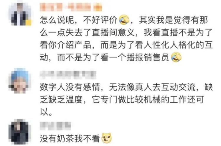 刘强东AI数字人直播间首秀,留言区对其逼真度反馈褒贬不一,既有用户不时发出“数字人还是真人”的疑惑,但因为没有实时互动,也有用户觉得“像是背稿子”“没感情”。