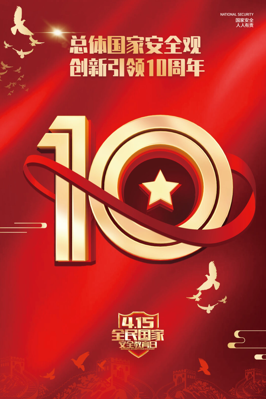 2024年4月15日,是我国第9个全民国家安全教育日,今年的活动主题是“总体国家安全观·创新引领10周年”。