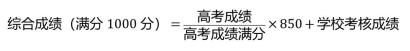 高考成绩公布后,我校按照考生高考成绩(不含高考加分)占比85%,学校考核成绩占比15%折算考生的综合成绩。具体计算公式如下: