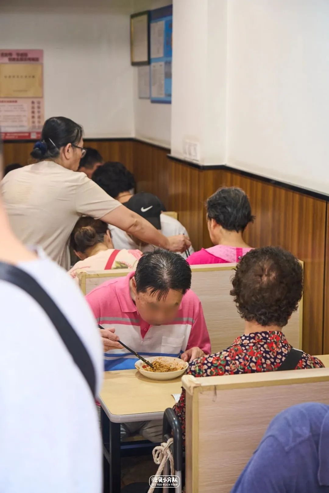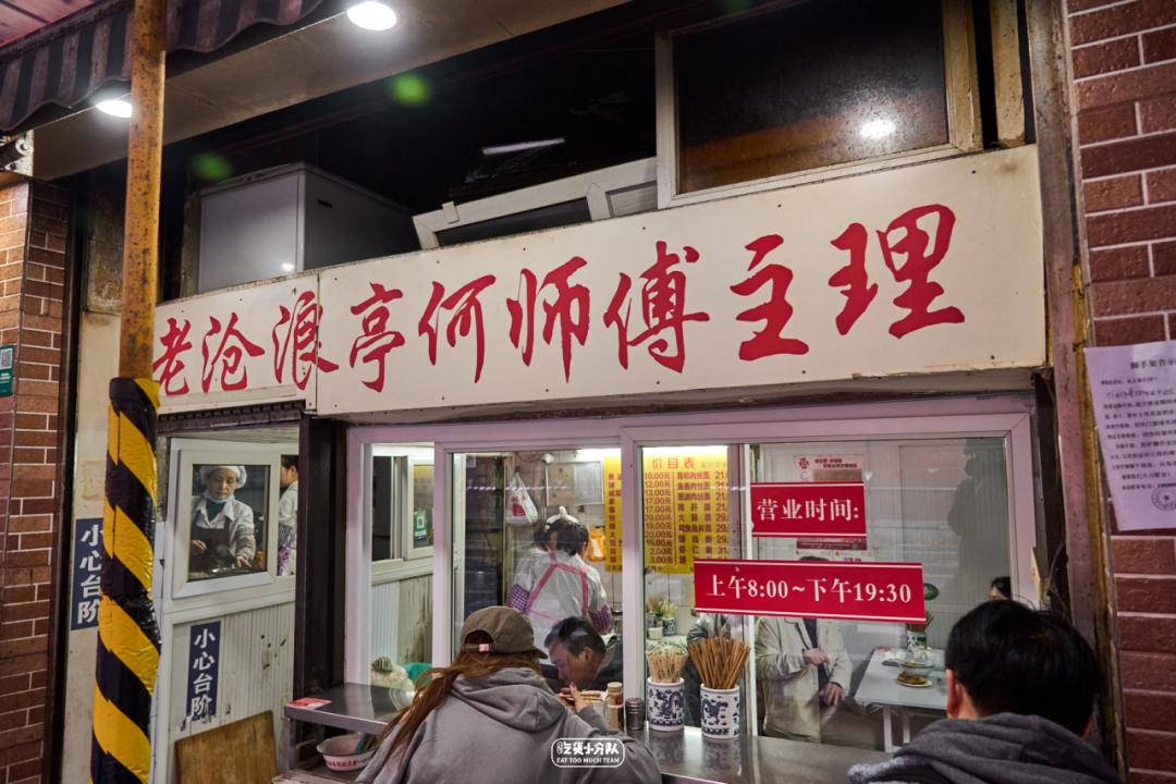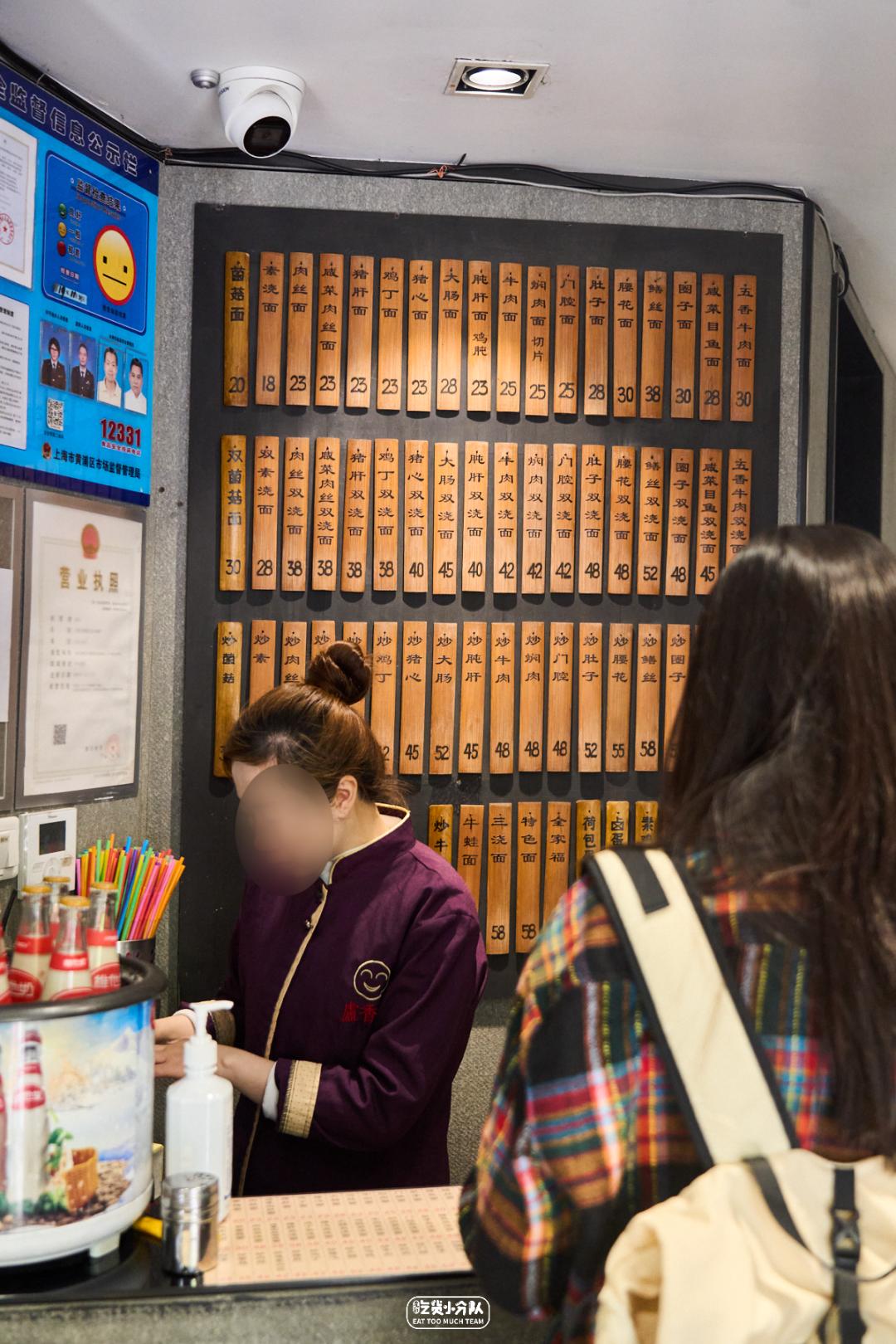 苏州人对面,是出了名的讲究。“沧浪亭”3个字,是上海苏式面馆的镇场招牌。1950年开业的沧浪亭,一度代表着上海面界的最正宗水准。这家大时代,便是当时后厨的何师傅,自己开的小面馆。光听店名就觉得不是等闲之辈。4张桌+窗边一排雅座,小小一个螺丝壳,坐得满满当当。