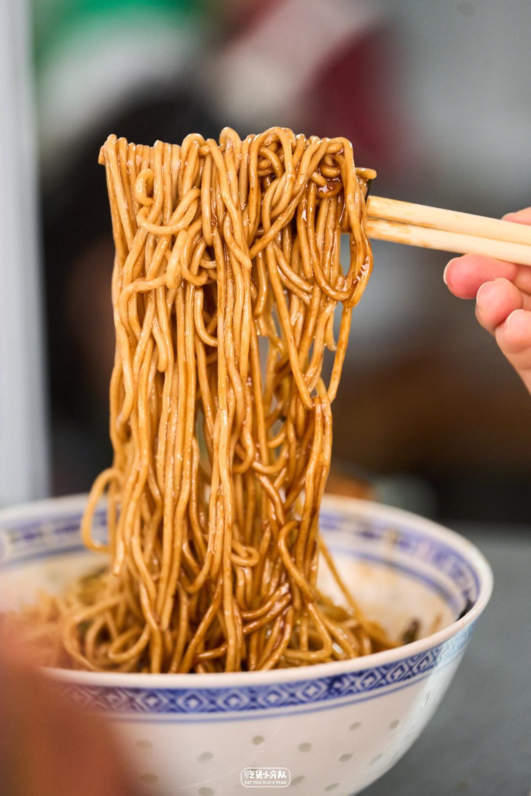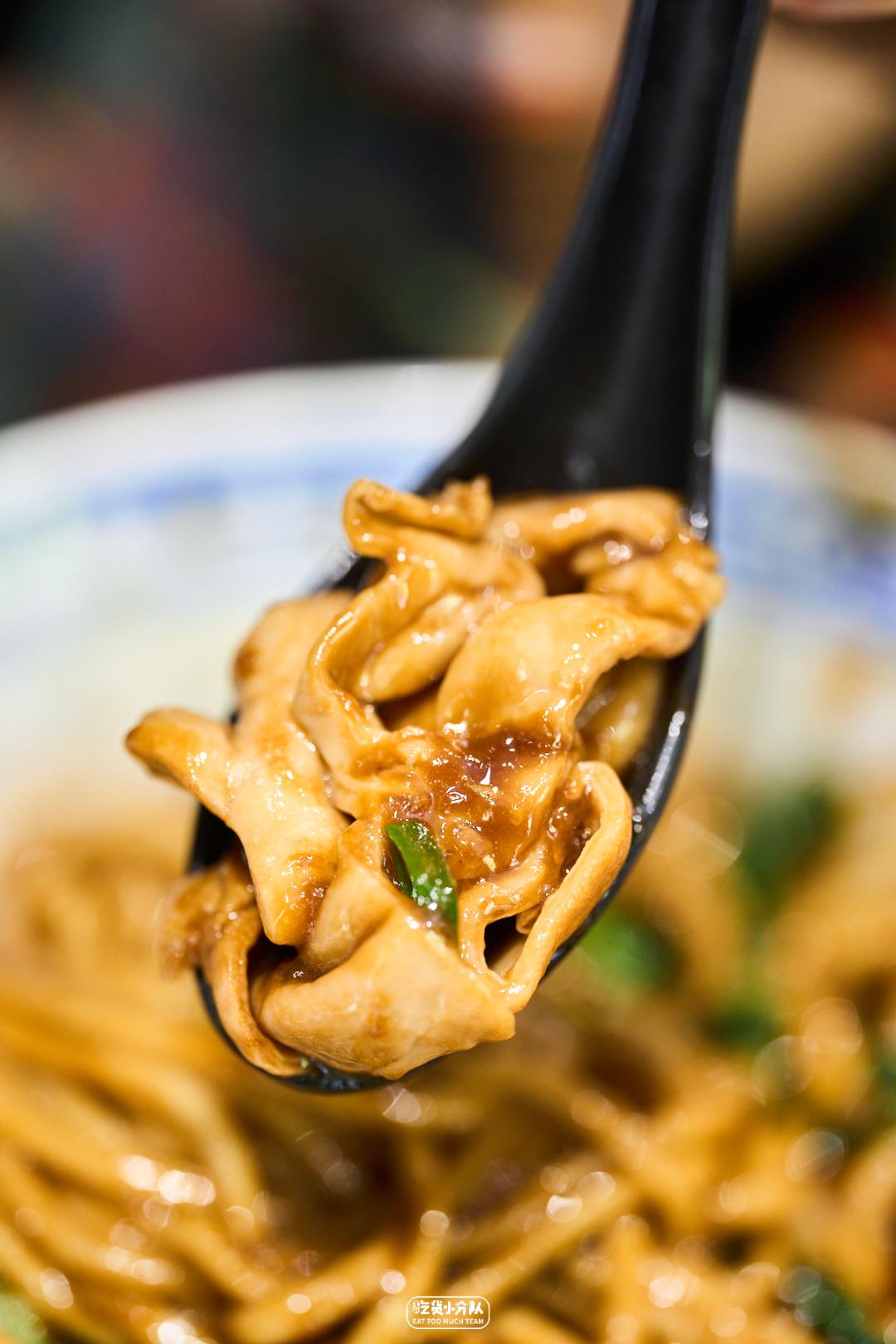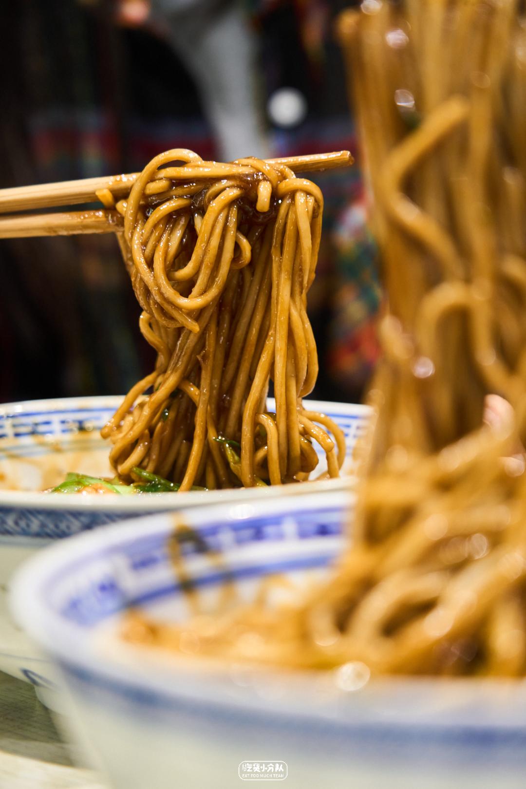 这店是卢湾区四大金刚面馆的延续,24h营业,从不打烊。掌厨的是卢湾传奇面条师傅缩头的传人。传承老派卢湾面馆的风格,每日现炒的浇头、浓油赤酱。开在一众上海老字号老大昌、老人和、沧浪亭之中,自有一番底气。各种内脏的处理不在话下,姚明都去过几次。(听说姚老板独爱9号桌。)份量max版 · 辣肉素交面 ·