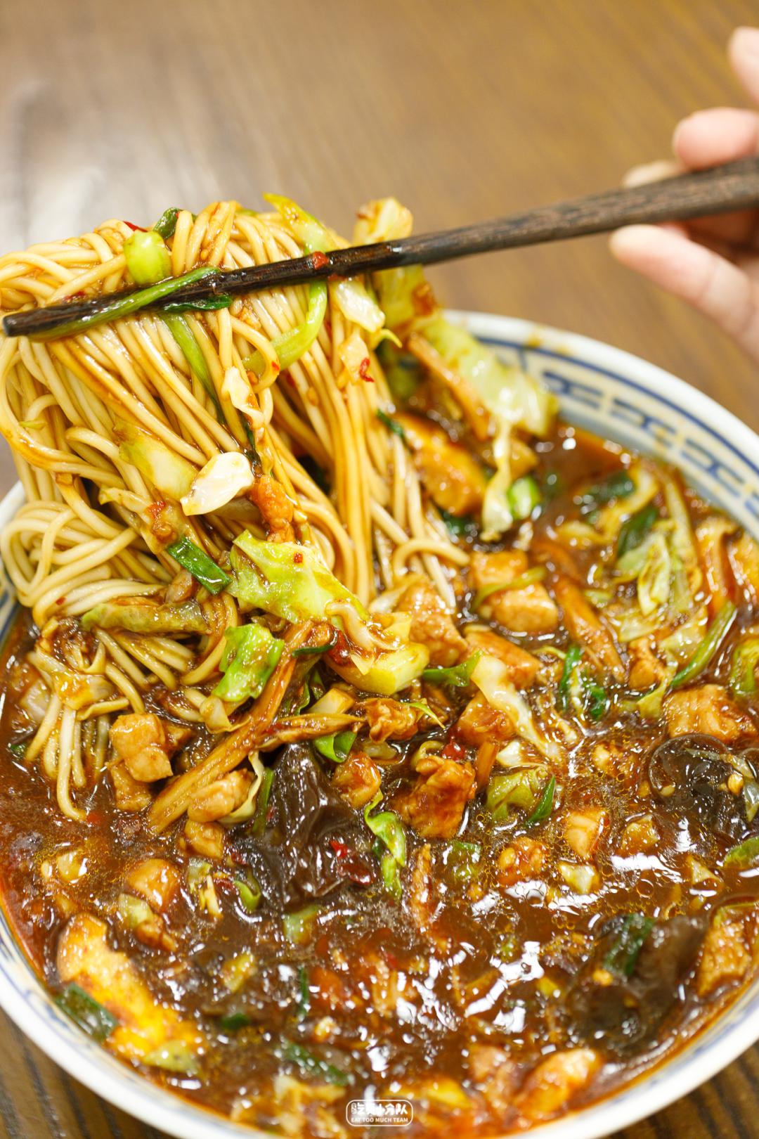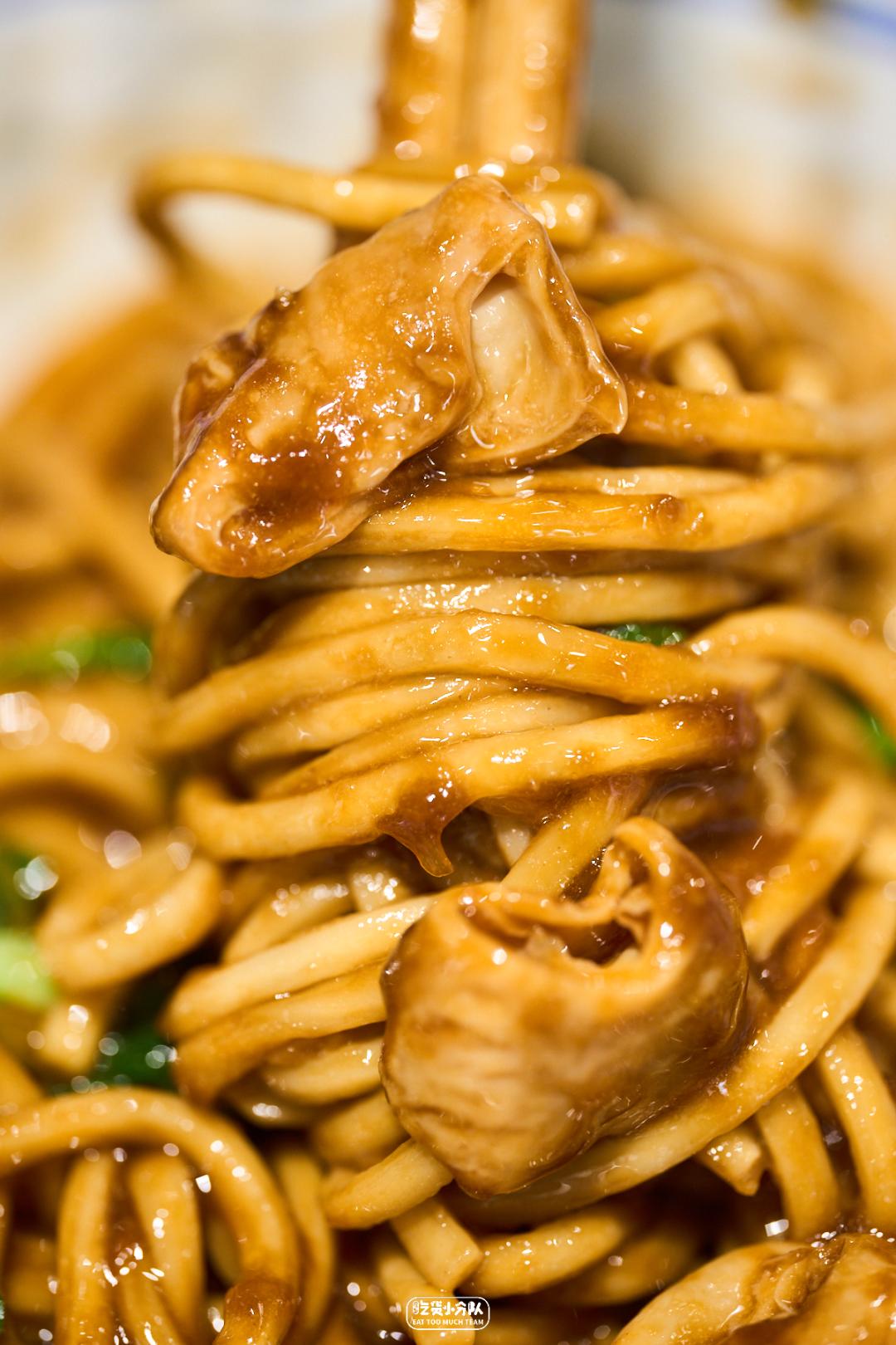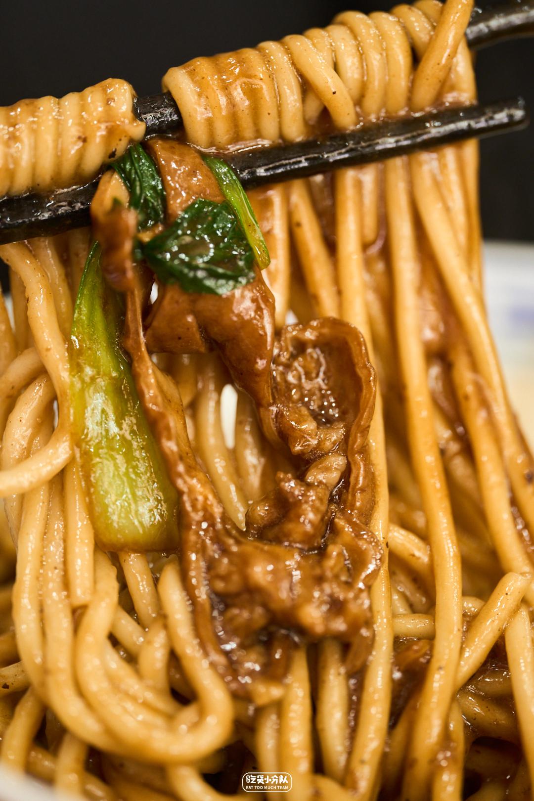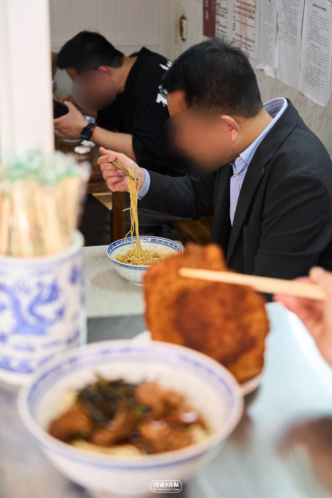 这店是卢湾区四大金刚面馆的延续,24h营业,从不打烊。掌厨的是卢湾传奇面条师傅缩头的传人。传承老派卢湾面馆的风格,每日现炒的浇头、浓油赤酱。开在一众上海老字号老大昌、老人和、沧浪亭之中,自有一番底气。各种内脏的处理不在话下,姚明都去过几次。(听说姚老板独爱9号桌。)份量max版 · 辣肉素交面 ·