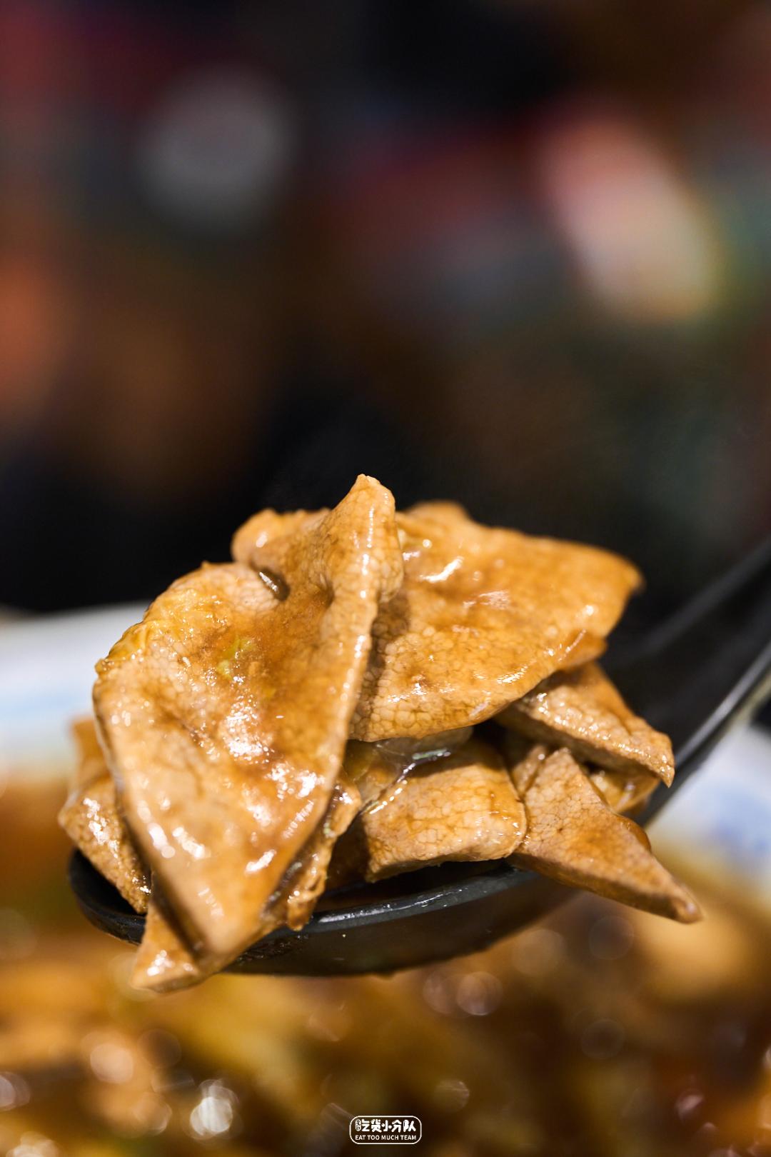 一碗大肠面,撑得起半个老上海的回忆。重芡重酱,浇头现炒是“缩头面”的特点。一碗面半碗卤,咸鲜的浇头格外厚重,大肠软糯有嚼头,腰花脆嫩,甚至猪肝的腥味也有所收敛。份量很大,是吃完1碗感觉自己重了3斤的扎实。碱水粗面