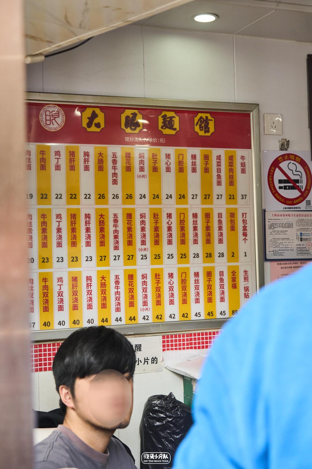 提起大肠面,首当其冲要推荐的就是「大肠面」。所谓“彪悍的面条,不需要解释”,拿招牌当店名,全上海就这1家。创始于1985年,早已成为了打卡胜地。从复兴中路搬到了西藏南路,门口等待的长队也是这家标志的风景线。招牌即巅峰 · 大肠面 ·