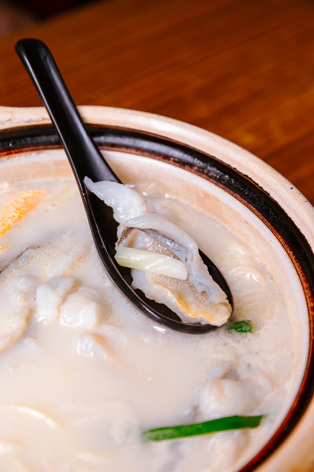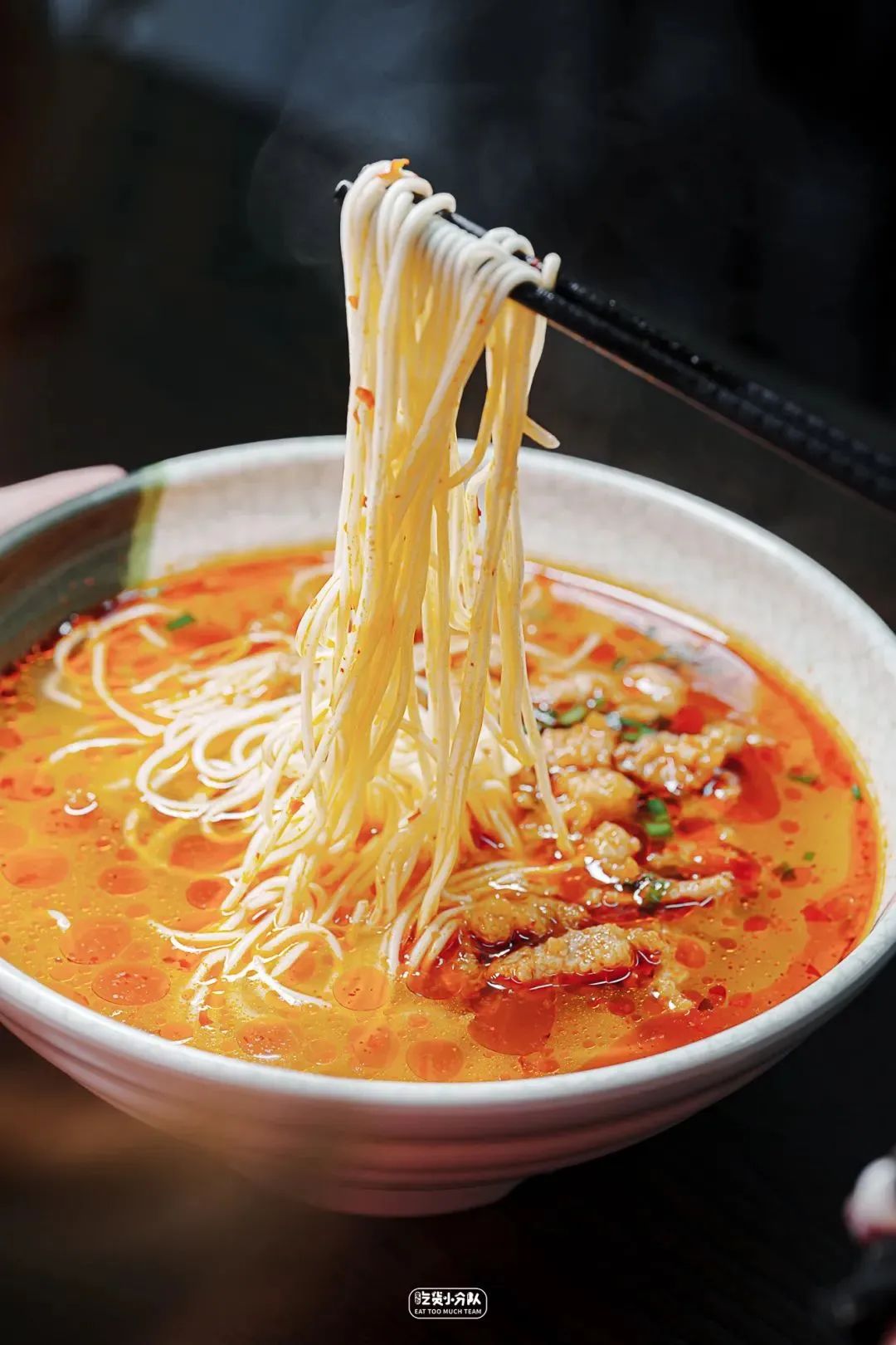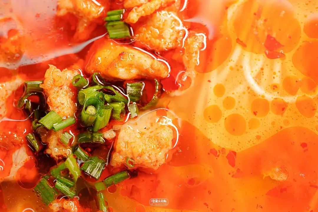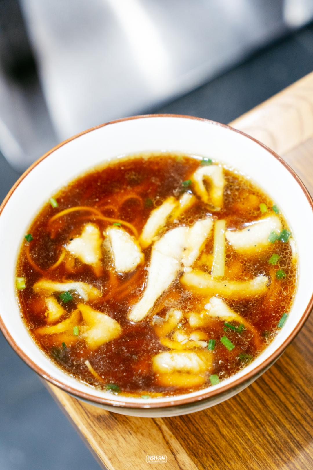 每天清晨从舟山进来的野生黄鱼来制作,处理好后再腌3小时完全去腥,才能下锅。鱼肉很嫩,不经意夹起一块就断了。汤底是经典的鲜甜口酱油汤底,能最大程度激发出鱼的鲜美,推荐再加份辣肉浇头,咪道美得不得了~「阿娘面馆」