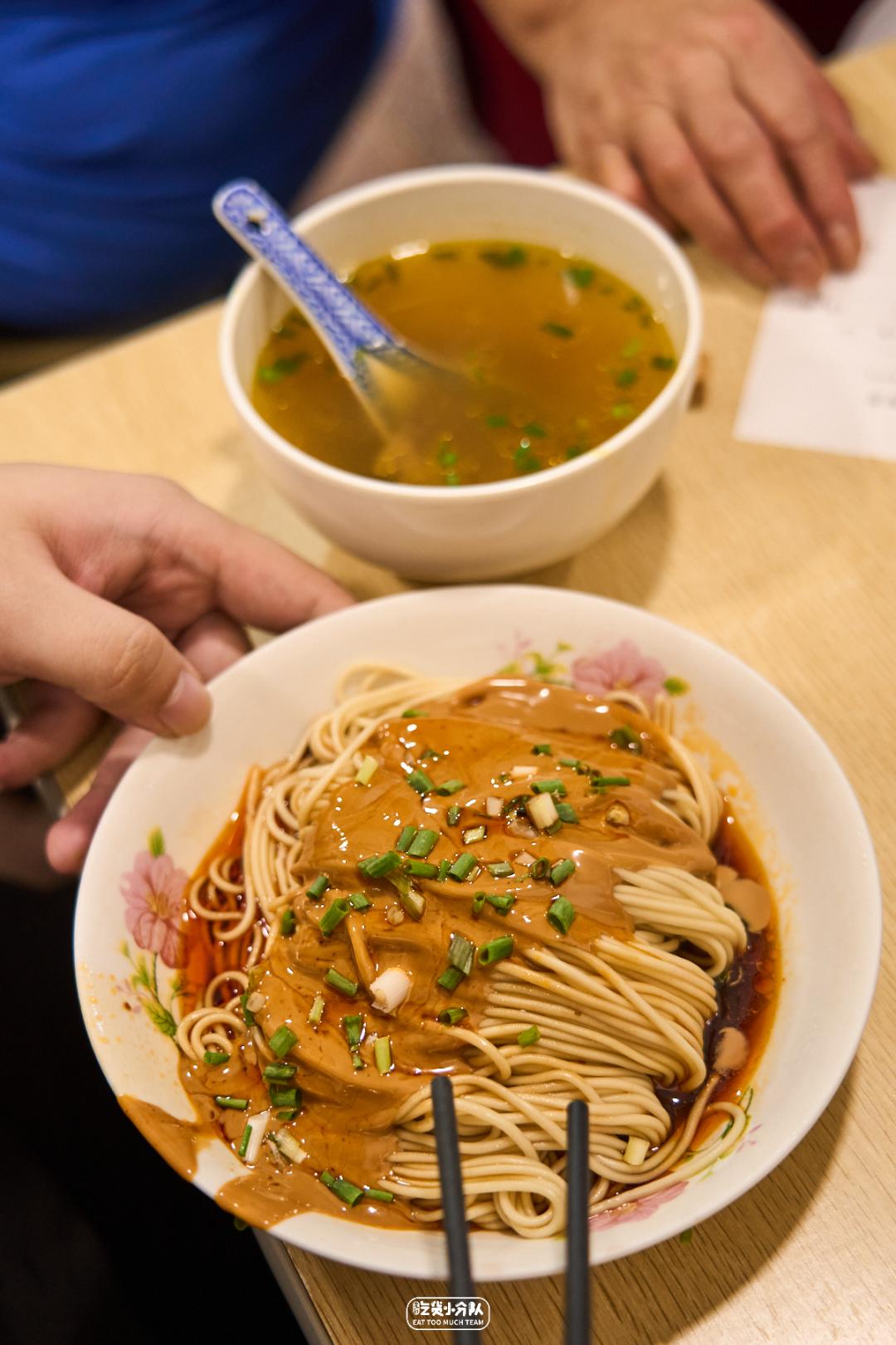 最早在雁荡路发家的味香斋,已经火了近20年,是周边爷叔阿姨狂热追捧的午餐食堂。十来张桌子胳膊肘挨胳膊肘,狭窄过道走路都困难。但依旧挡不住爱它的人热情高涨,拼桌等位丝毫不抱怨。连续3年获得米其林推荐的荣誉,是公认的“上海超级便宜的米其林小馆”。(现在开出许多分店,但还是偏爱去老店吃上一碗)TOP性价比 · 麻酱面 ·