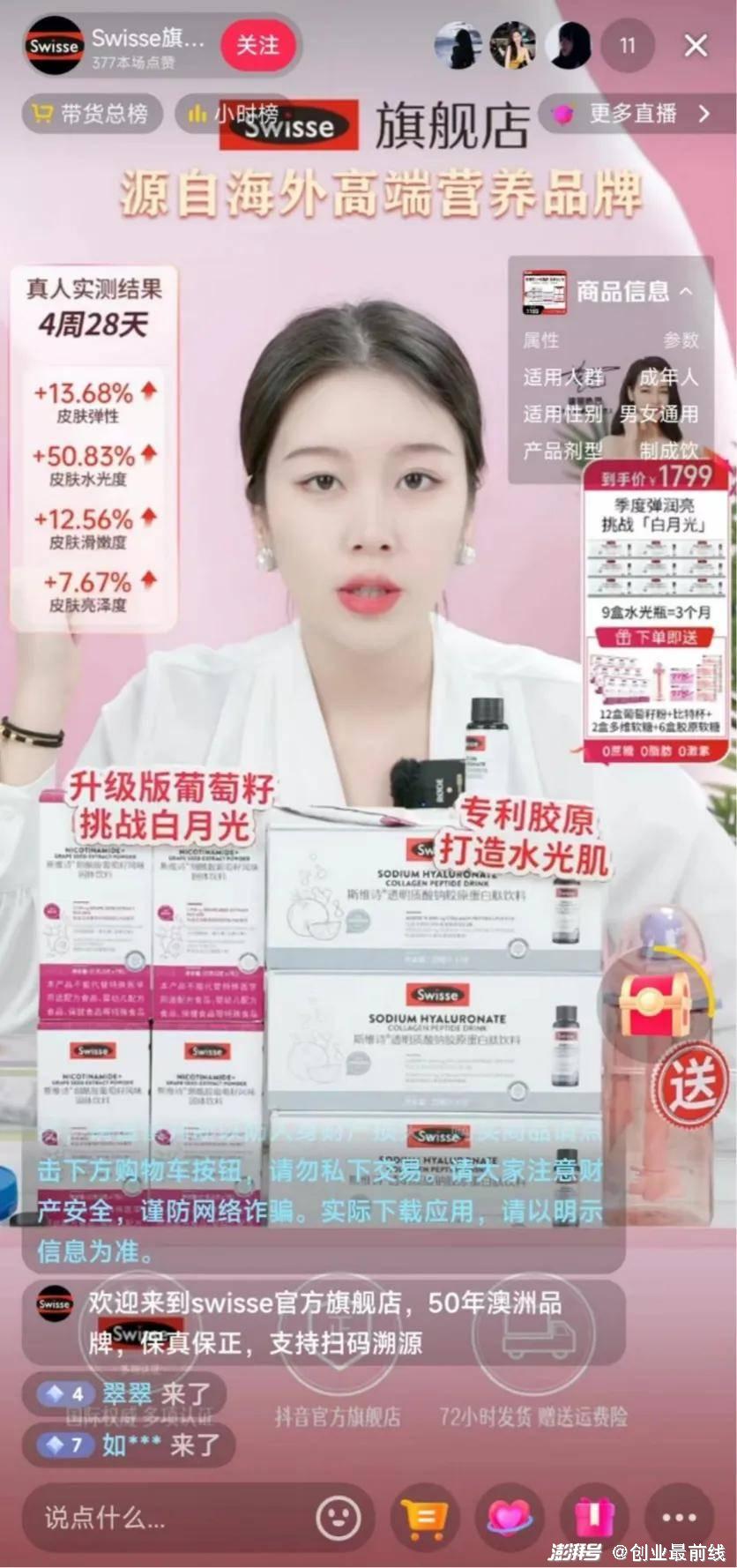 翻看Swisse的直播间,从水光片到水光瓶,再到超光瓶,从烟酰胺、胶原蛋白、玻尿酸,到原花青素、葡萄籽,在复杂的产品营销话术攻势之下,甚至有人质疑,Swisse越来越像一家新型医美公司。