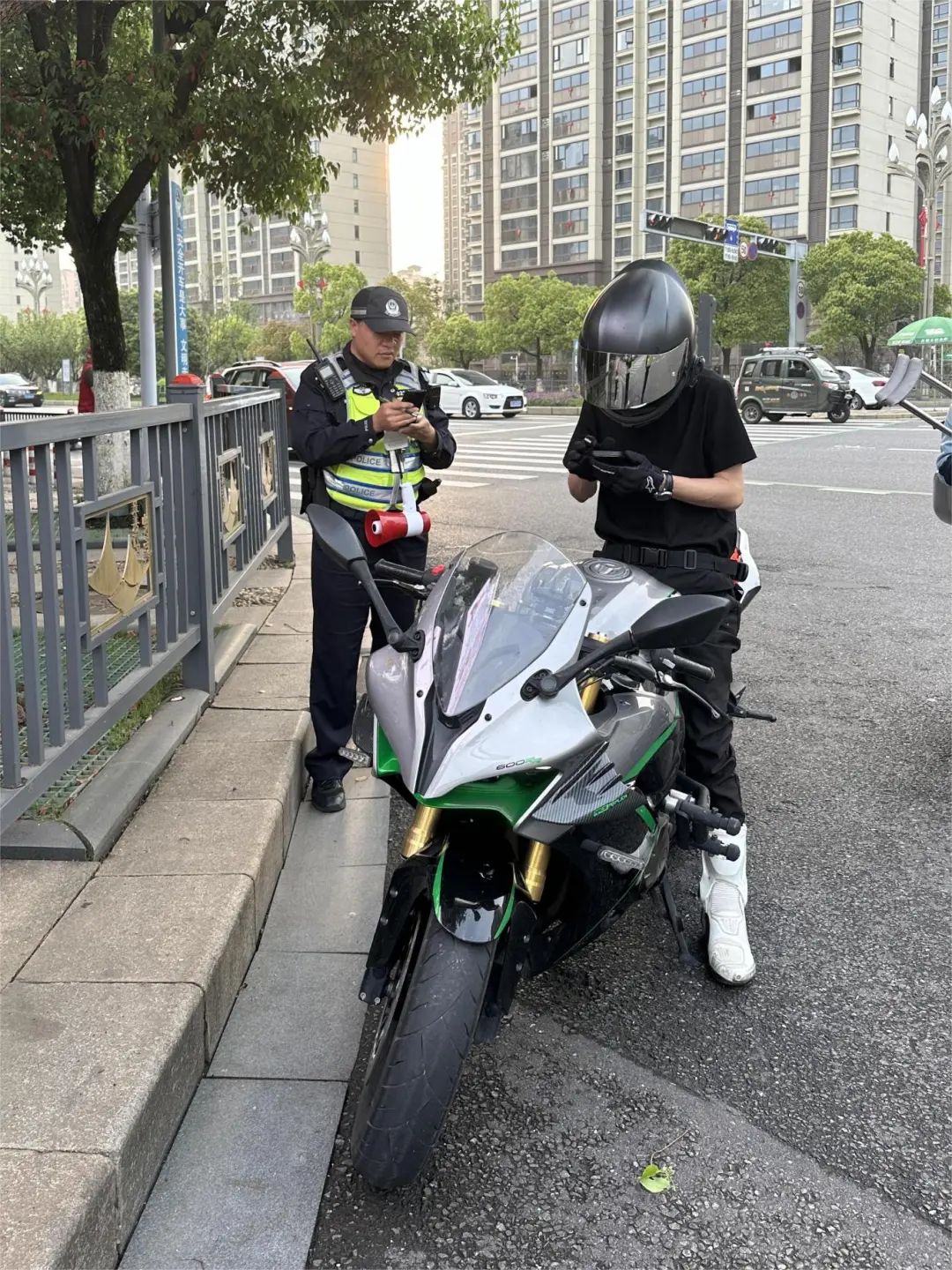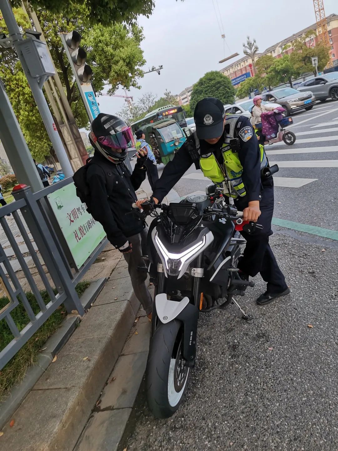 2024年4月15日18时22分许,当事人刘某某(男,21岁)驾驶赣G86S62普通二轮摩托车,在八里湖大道通湖路口被执勤交警拦停。经检查,该车排气管进行了非法改装。根据《中华人民共和国道路交通安全法》第十六条第一款规定,执勤交警依法对其进行了罚款,并责令将车辆恢复原状。03