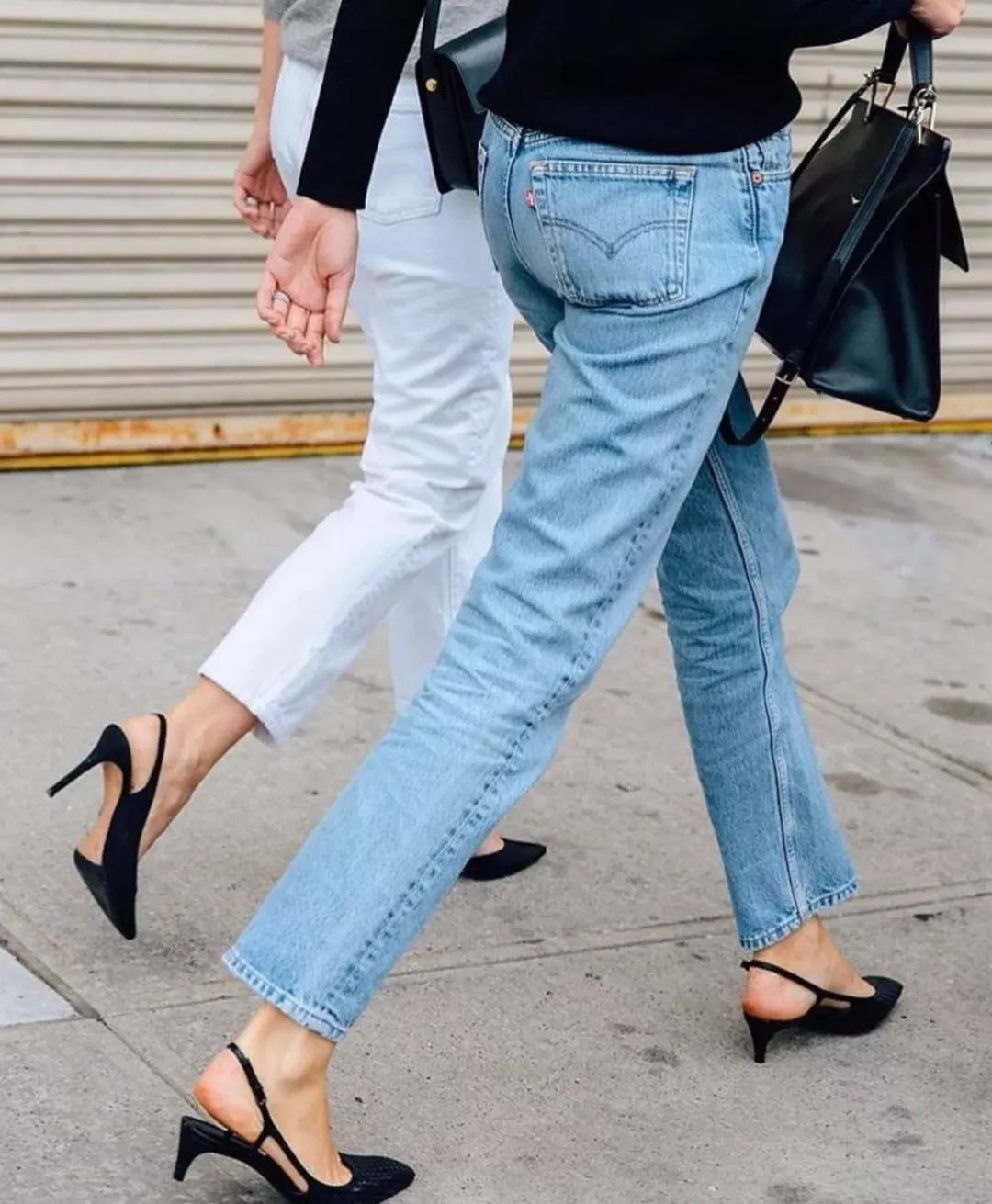 牛仔裤+Slingback共和君一直觉得,Slingback那一根小小的带子是有魔力的!它可以让你的鞋子瞬间变得跟脚却不磨脚,还能让鞋子多出一丝性感神秘的味道!