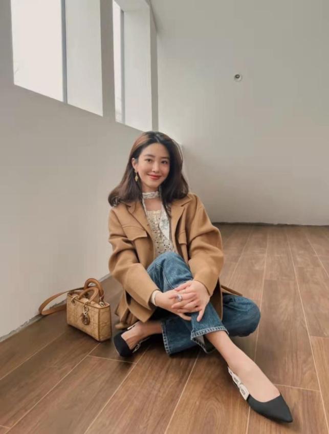只要不出席严肃的场合或者有特别的规定,这种方头的Slingback搭配牛仔裤通勤感蛮浓的,平时穿去上班也没问题。