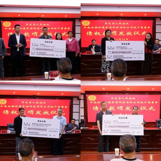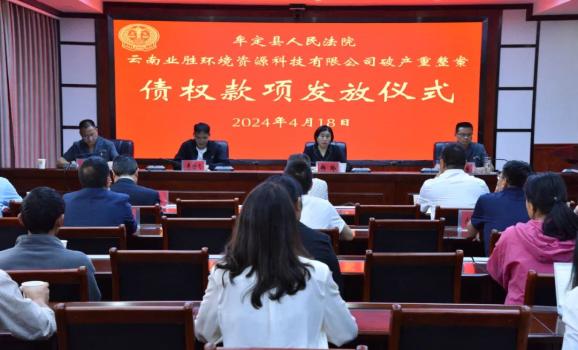 4月18日下午,牟定县人民法院举行云南业胜环境资源科技有限公司破产重整案债权款项发放仪式,此次共计发放了超过1200万元的债权。*点击观看视频