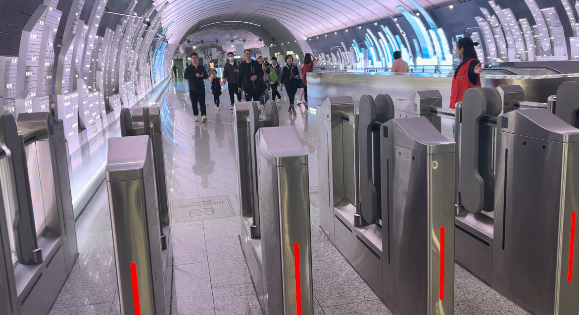 体验:强闯会被拦在闸机外,人退后几秒后再开门
