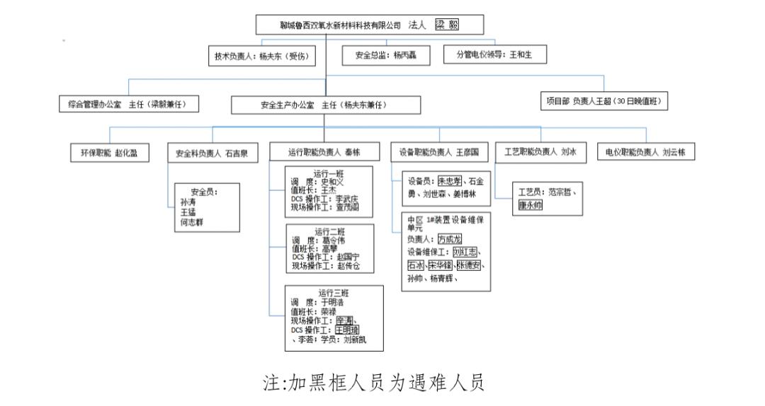 2023年5月1日8时36分许,位于山东聊城高新技术产业开发区(以下简称聊城高新区)的中化集团鲁西化工集团聊城鲁西双氧水新材料科技有限公司1#双氧水装置发生爆炸着火事故,造成10人死亡、1人受伤,直接经济损失5445.31万元。