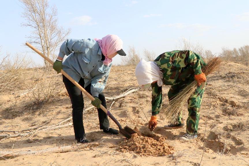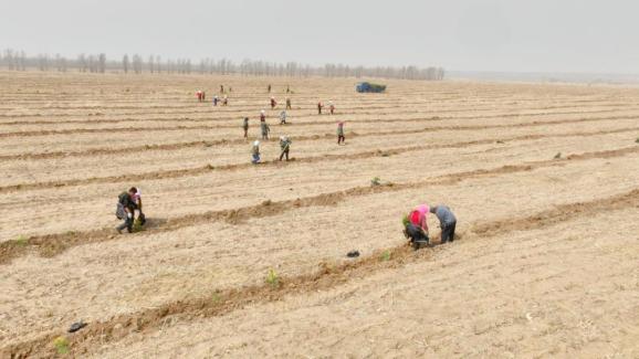 工人补植锦鸡儿和山杏。库伦旗山水林田湖草沙生态保护和修复工程茫汗苏木白力嘎嘎查项目区现场负责人萨仁通拉嘎介绍:“为最大限度保护修复治理区的植被,我们持续加强人员和机械管理,安排专人全程跟踪指导,减少人为干扰,保护现有植被的同时,提高补植补造工作效率。此项目区计划补植补栽3314亩,预计4月下旬完工。”