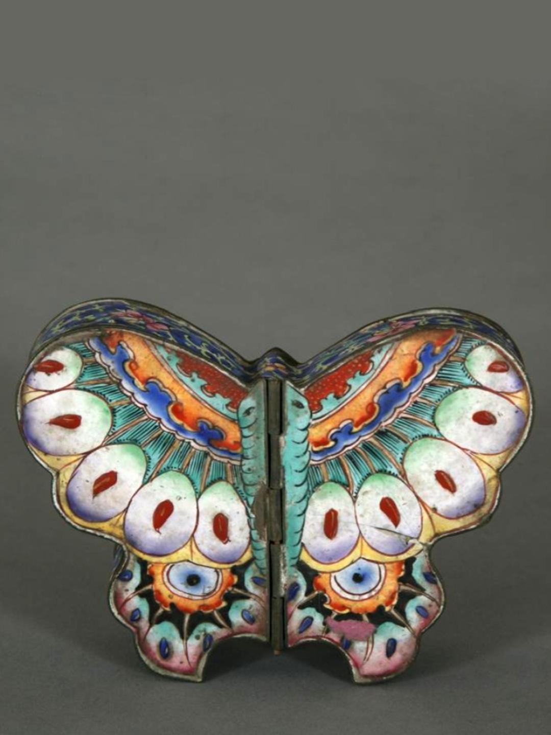 清 画珐琅蝴蝶纹蝴蝶式盒