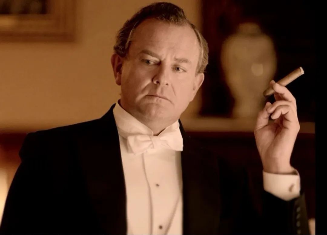 晚宴后的休闲时光属于侃侃而谈的男士们。女仆为空杯蓄满佳酿,克劳利取出一根精心挑选的雪茄点燃。