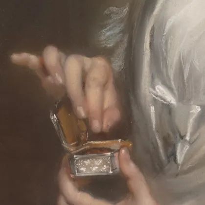 Robert Shurlock Sr.夫人,约翰·罗素,1801,大都会艺术博物馆造型精美、技艺繁杂的鼻烟盒,往往采用钻石、绿宝石、玛瑙等名贵宝石镶嵌,彩绘、陶瓷、珐琅、金质等工艺更是屡见不鲜。