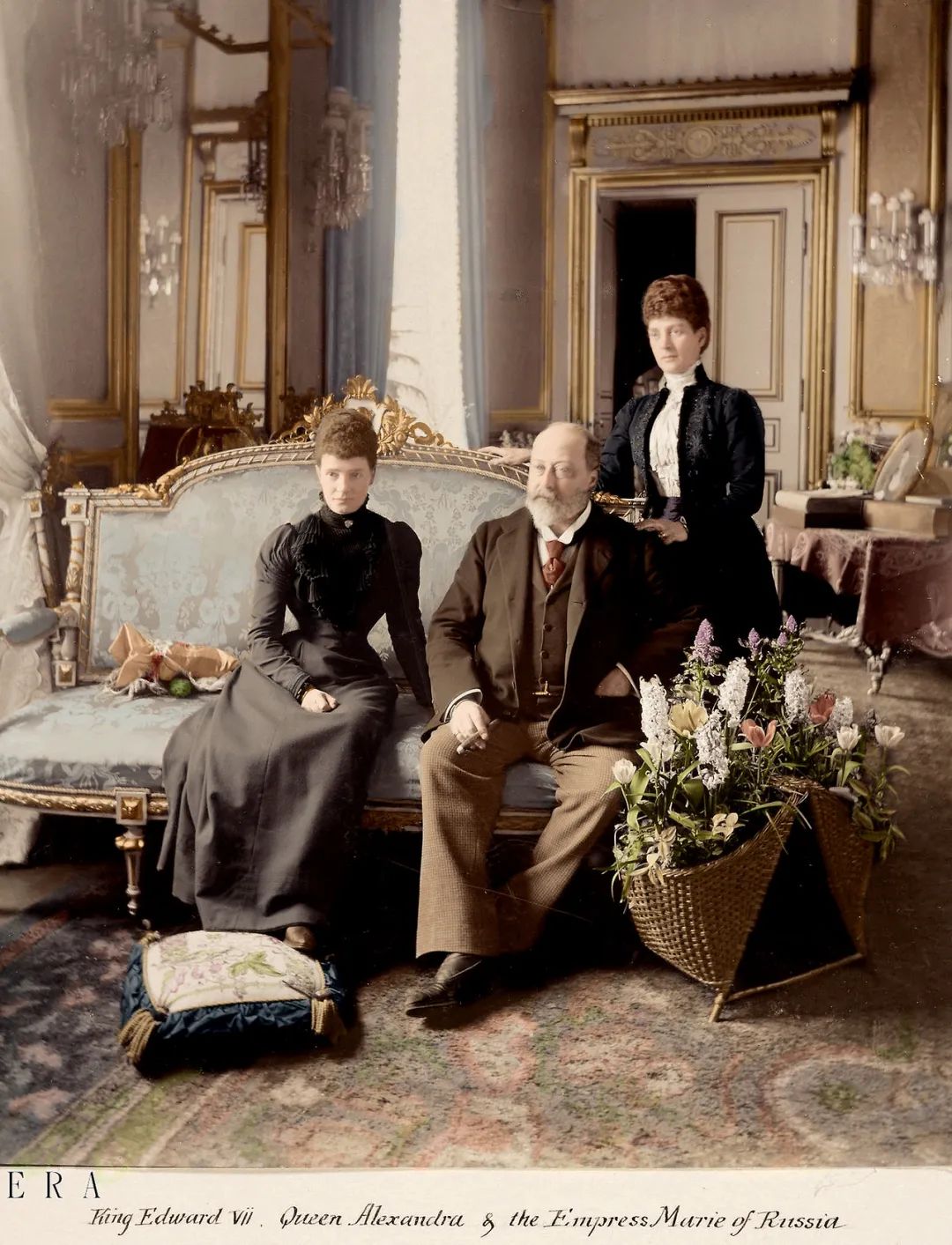 爱德华七世与妻子亚历山德拉王后、妹妹玛丽·费奥多罗芙娜。爱德华七世在位期间雪茄几乎不离手,如果说“绅士爱雪茄”这股时髦风气源于何人,那爱德华七世必定一马当先。