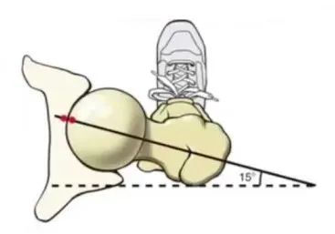 其实,在正常情况下,从人的头顶向下看,两侧股骨颈与横穿身体直线的夹角小于15°,内旋再严重,两侧大转子间距也只会增加三毫米左右,不可能因此造成明显凸出。