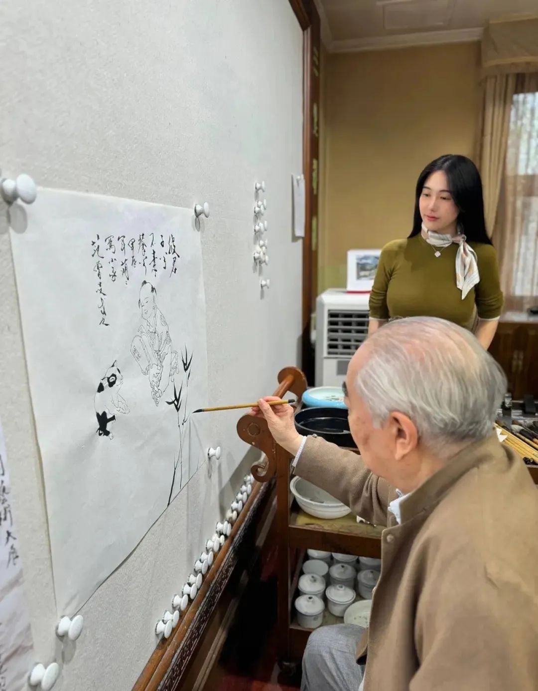4月10日,86岁的画家范曾称自己即将结婚,结婚对象是36岁的徐萌,比他小了整整50岁。在晒出的合影中,对方看起来风华正茂,身材高挑,一头乌黑的长发,站在范曾旁边观看他画画,颇为闲适。