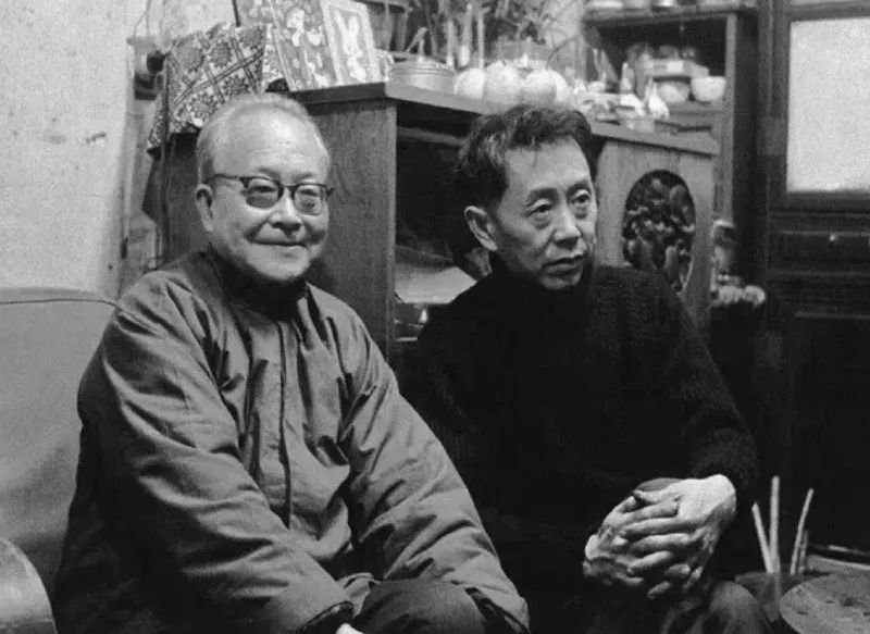 天空下着小雨,冷冷清清,黄永玉与沈从文坐在一起听湘剧。