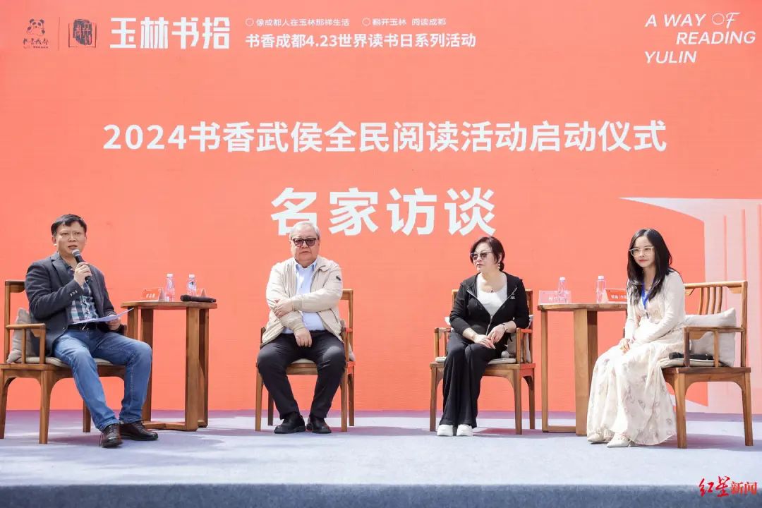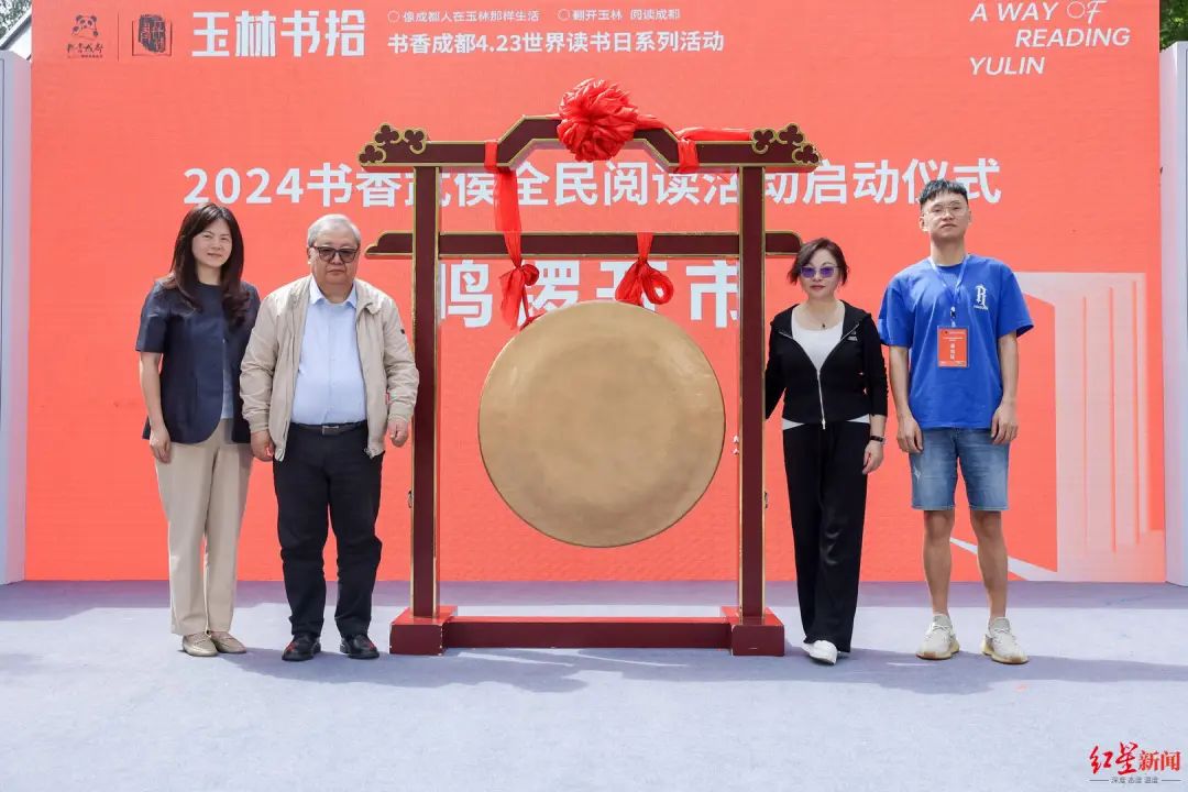 今日上午,伴随着一声锣响,“玉林书拾·2024书香武侯全民阅读季”拉开序幕,诗人、中国作家协会诗歌委员会主任吉狄马加,中国当代著名作家杨红樱,中国作家协会诗刊社办公室副主任张志刚,成都市作家协会副主席彭志强,网络作家飞天鱼、姒锦等文化名人齐聚启动仪式,打开玉林生活方式,感受书香成都的文化氛围。