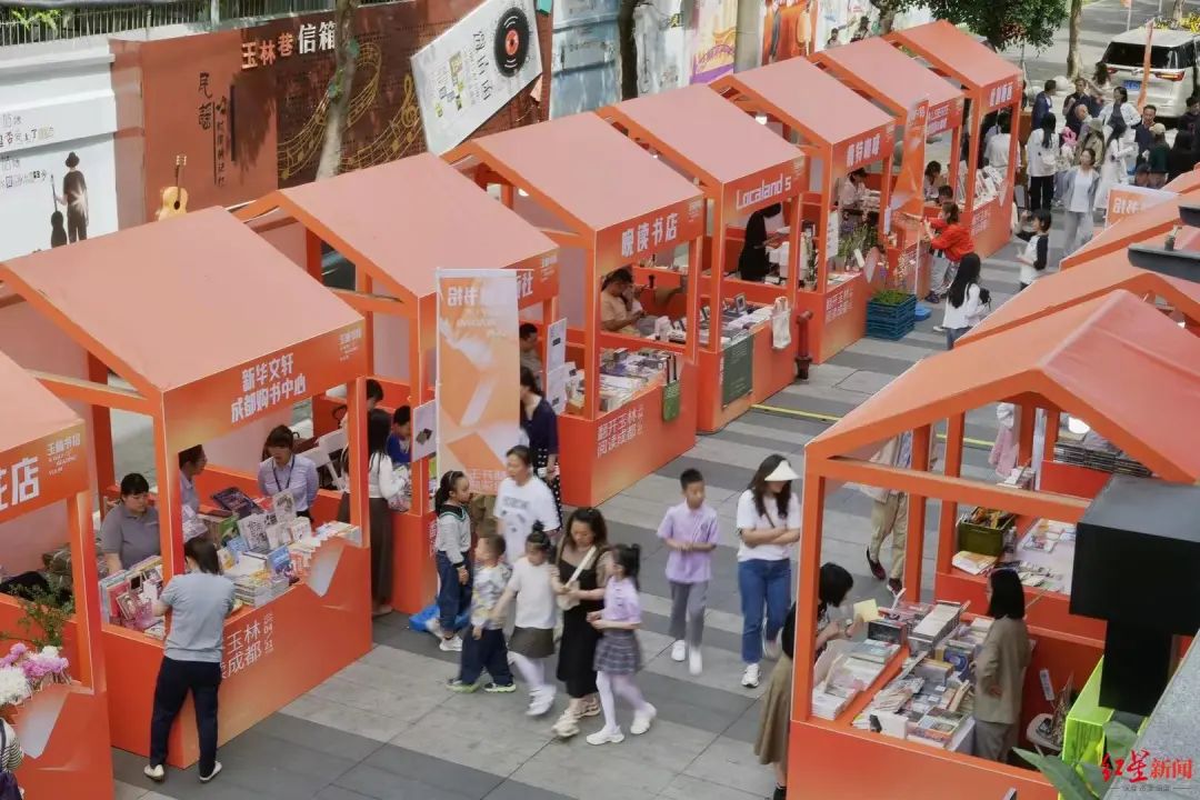 作为活动亮点,“玉林院坝坝头的书店”快闪市集也正式于民谣里开市,云驭风、库闻书店、成都时代出版社等书店、出版社、咖啡文创等限时出摊,用灵感点缀玉林的书香氛围。