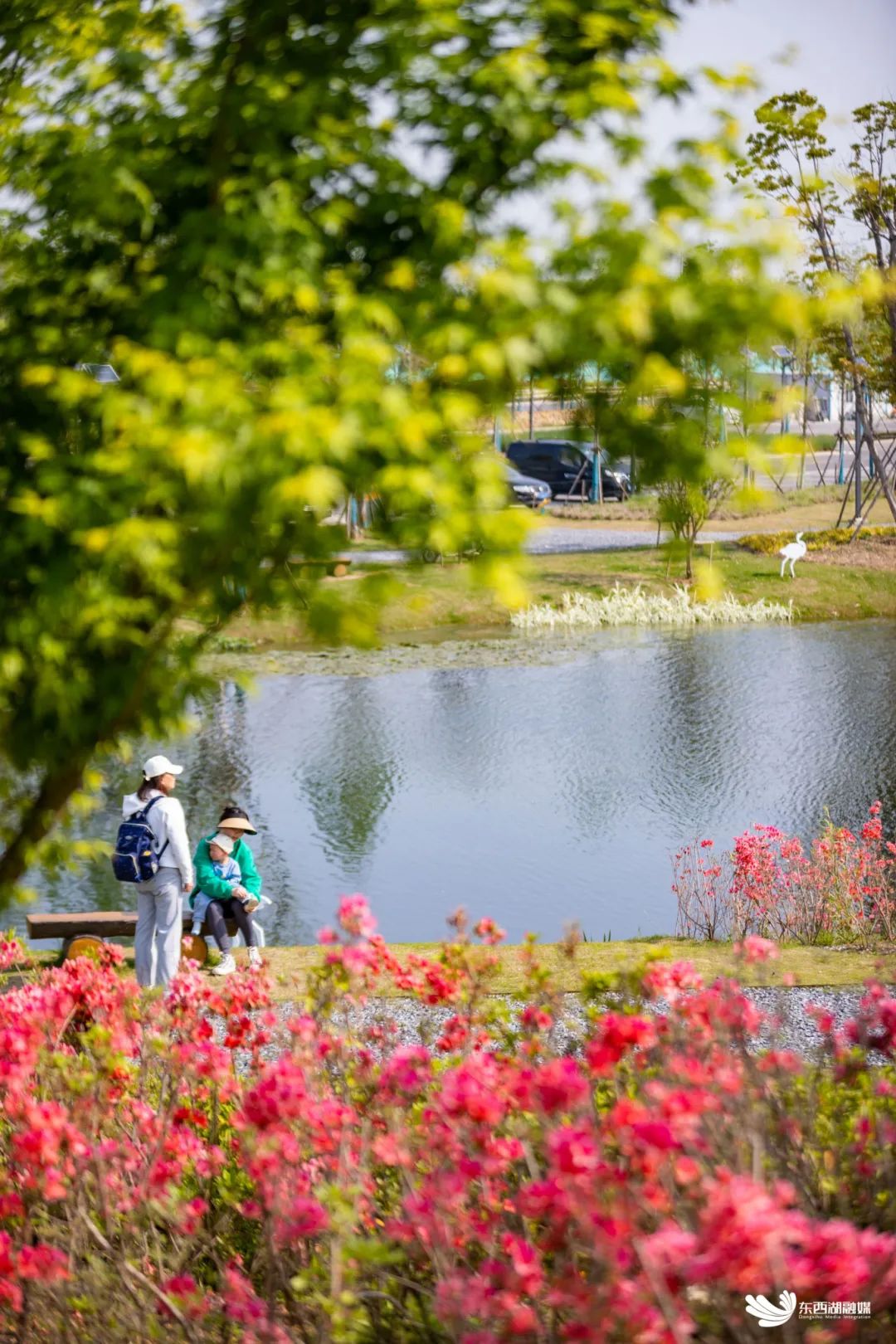 杜公湖国家湿地公园(北入口),游客欣赏春日美景。推荐地点丨杜公湖国家湿地公园北入口、吴家山公园、梧桐雨、金山大道沿线、临空港大道沿线。