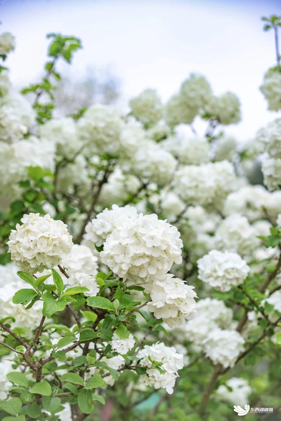码头潭公园,木本绣球被游客各种“凹造型”。木本绣球簇簇成团